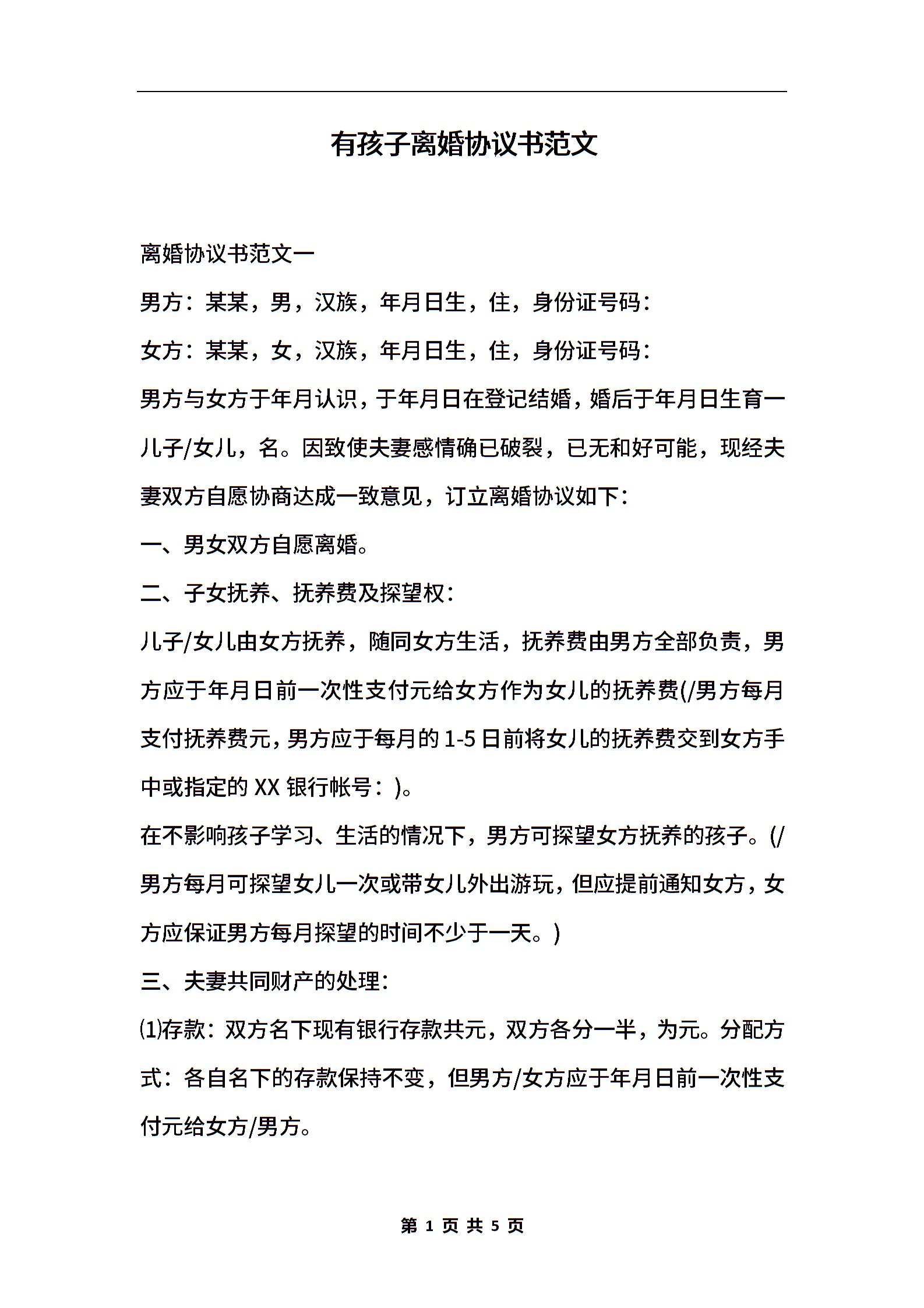 有孩子离婚协议书范文