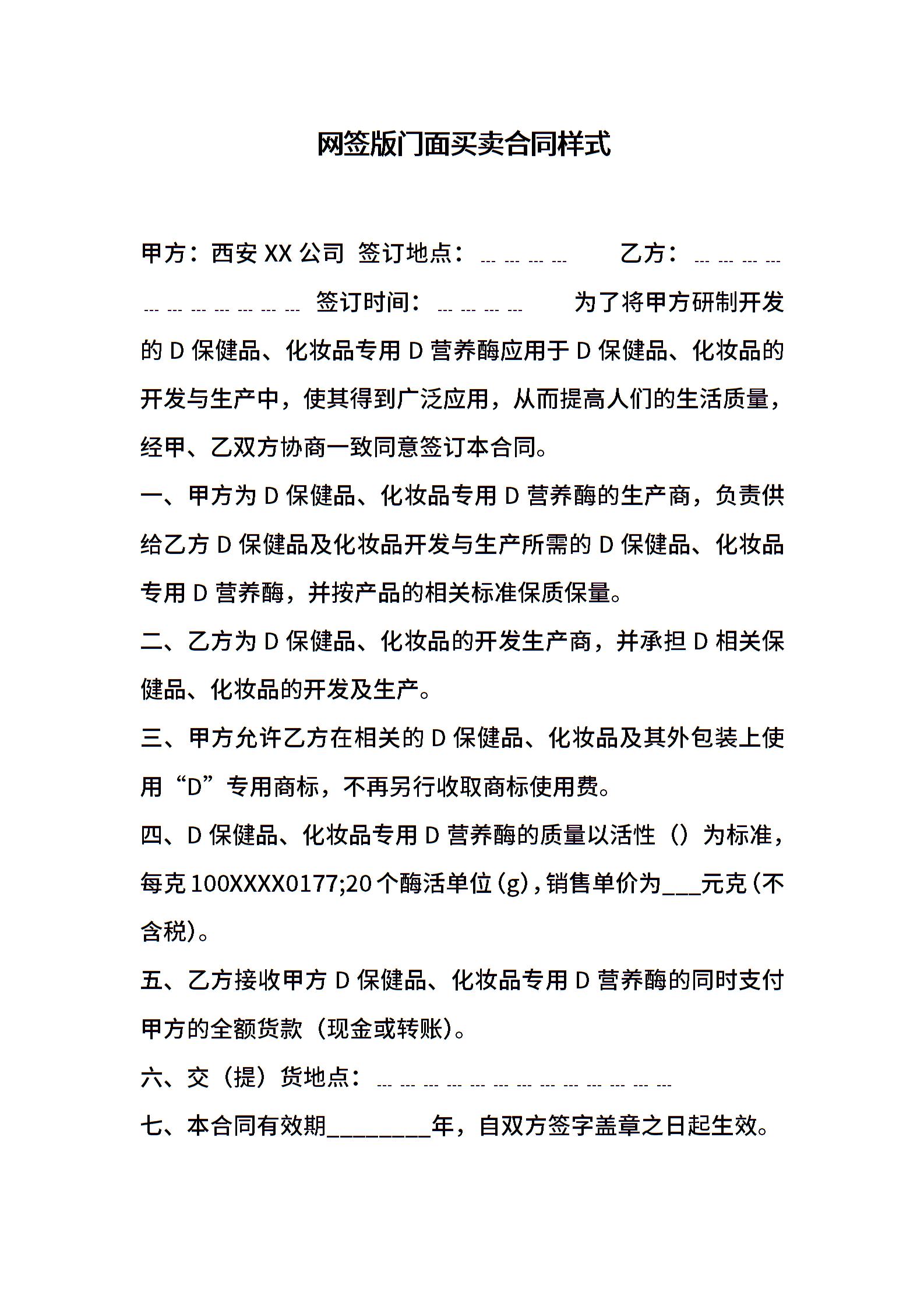 网签版门面买卖合同样式