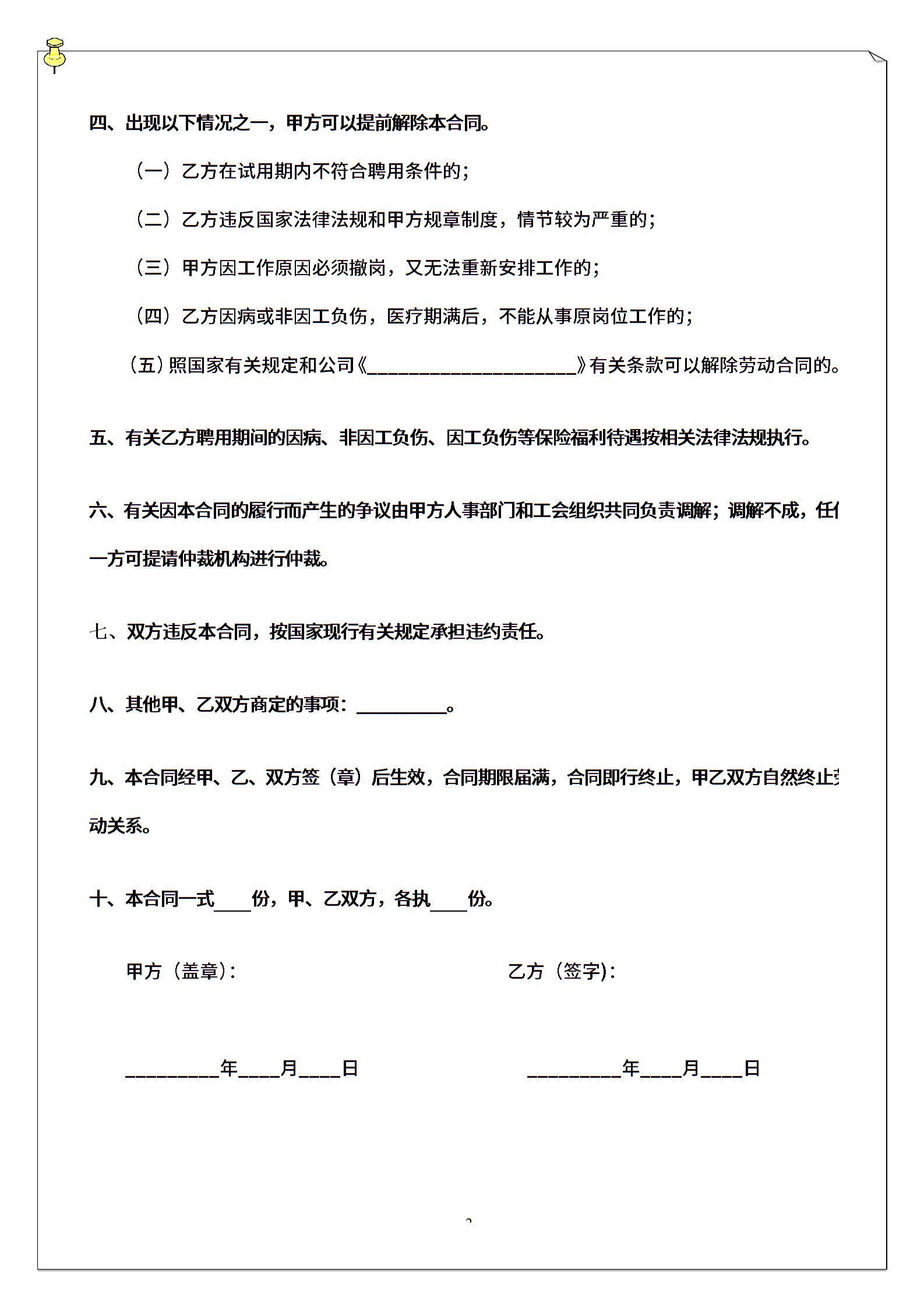 • 分类 聘用合同