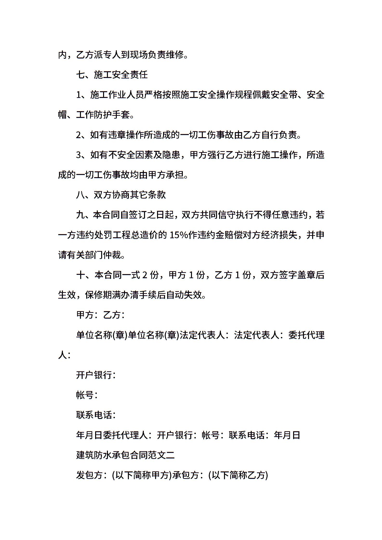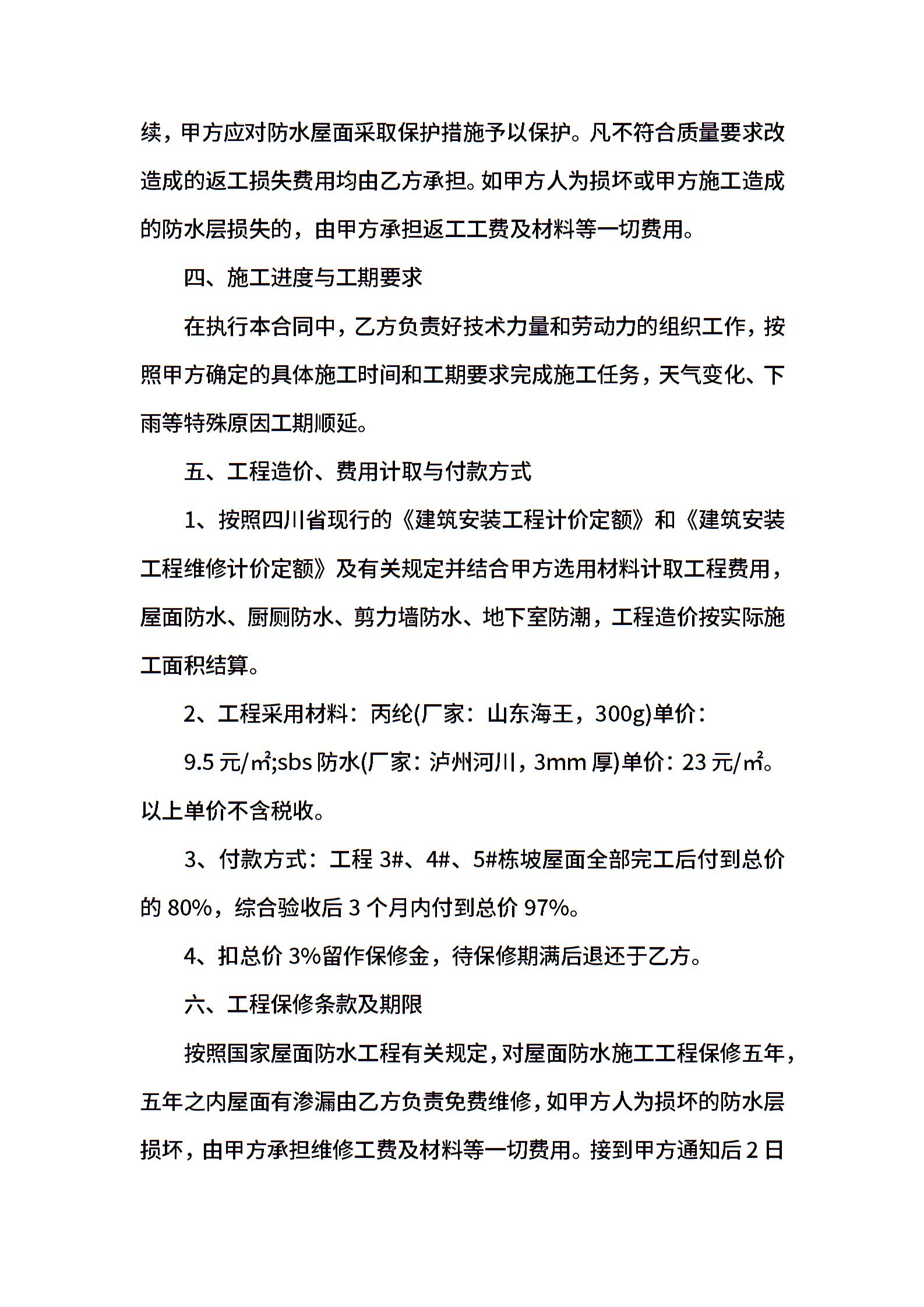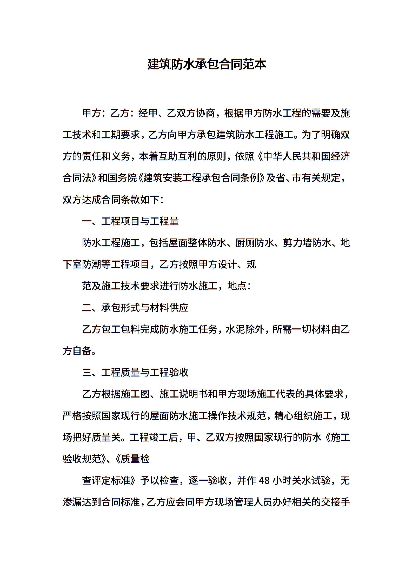 建筑防水承包合同范本