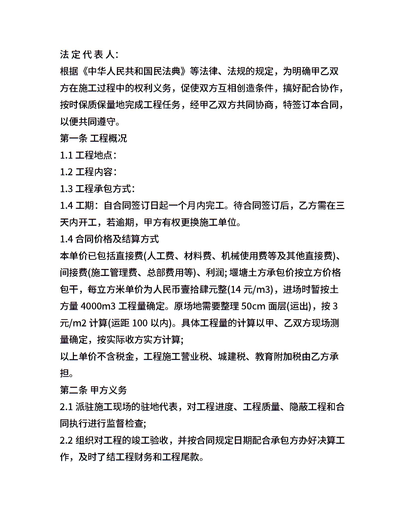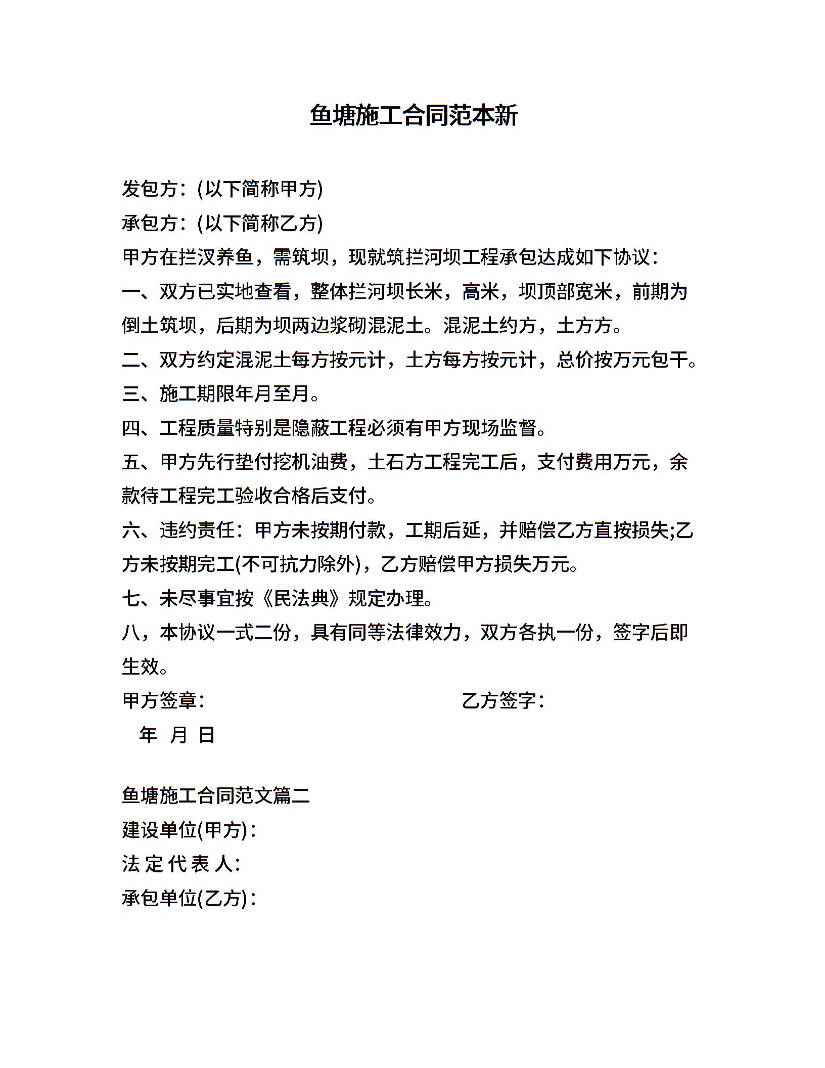 鱼塘施工合同范本新