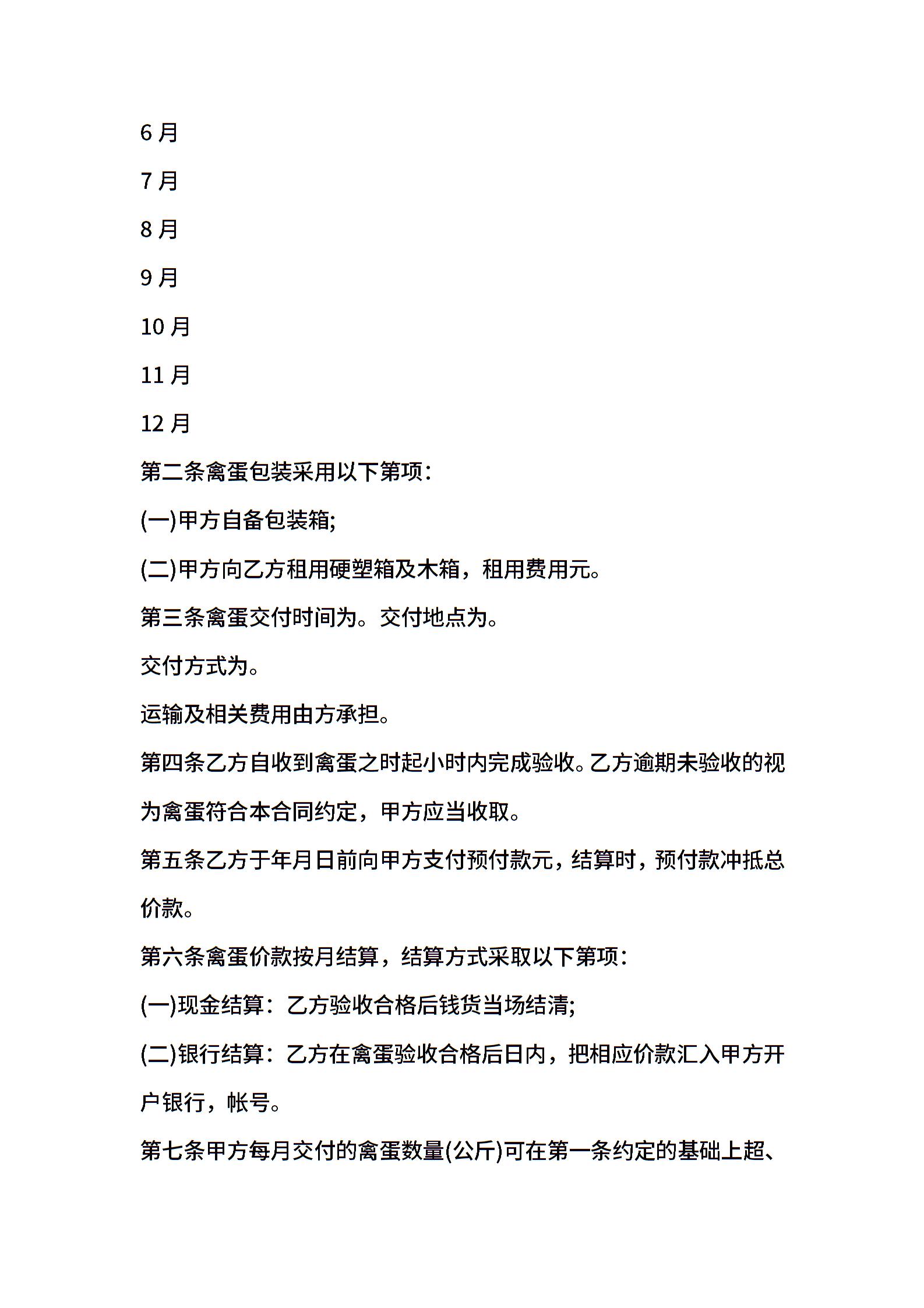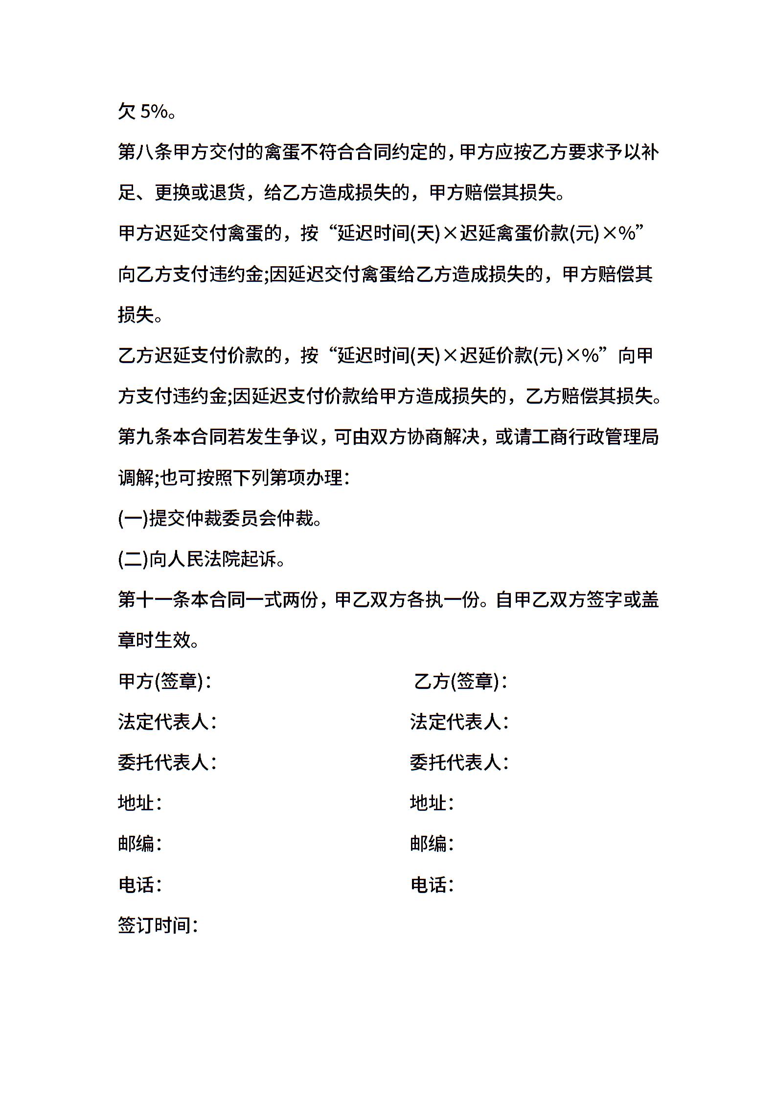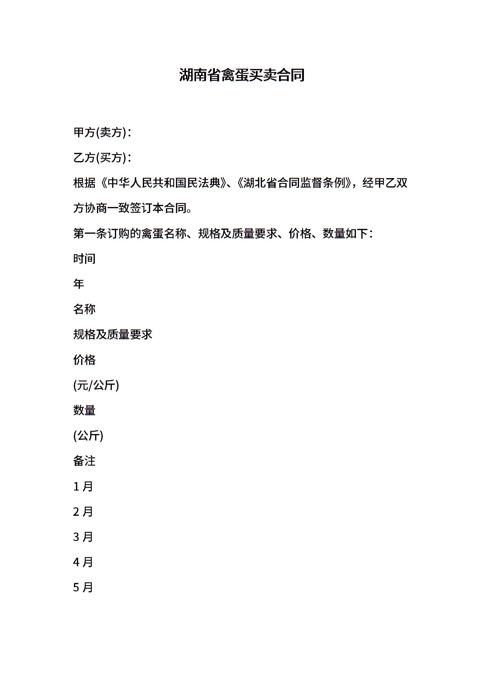湖南省禽蛋买卖合同