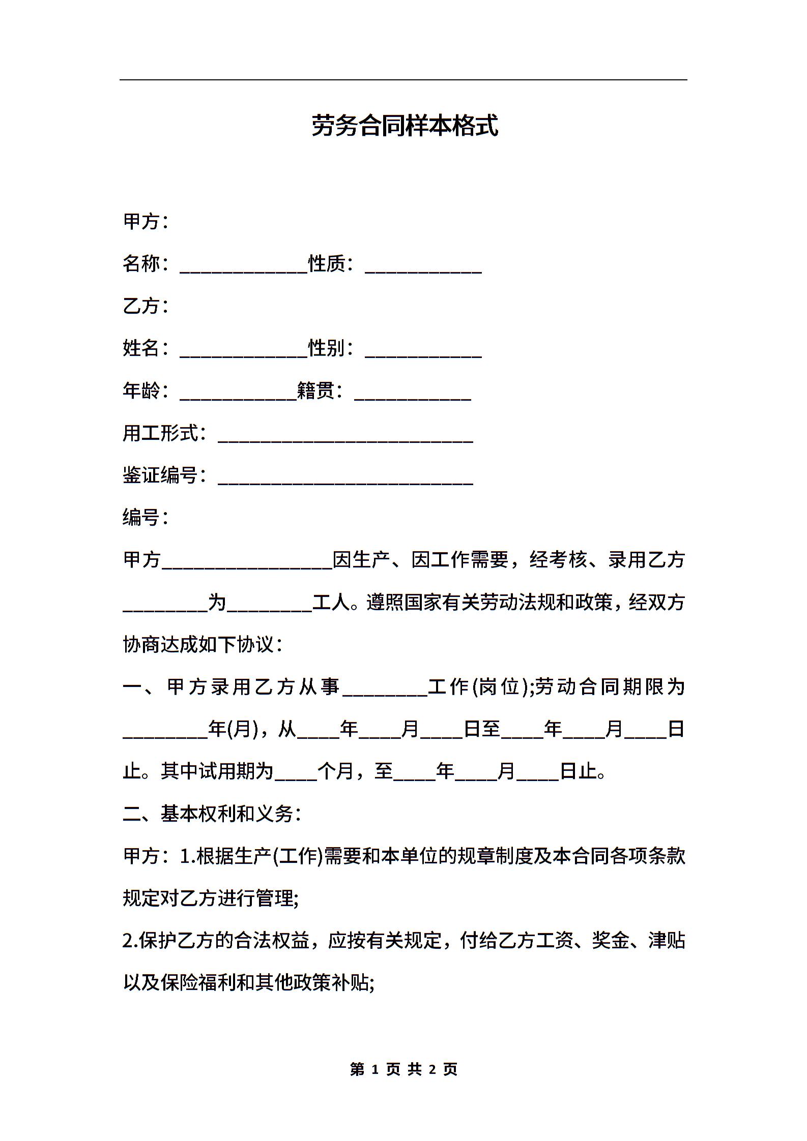 当前位置:量子办公 > 合同模板 > 劳务合同 >