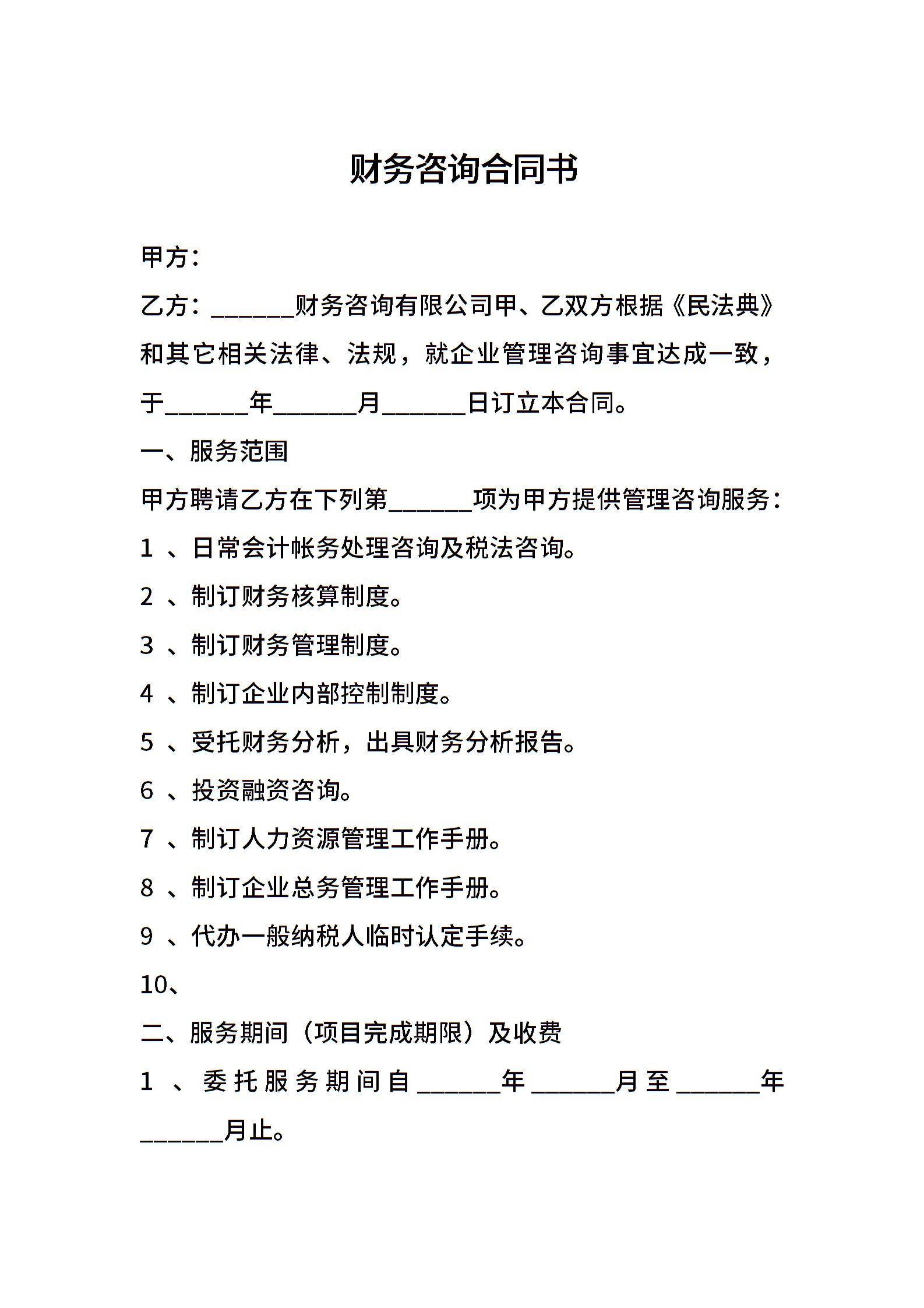 财务咨询合同书
