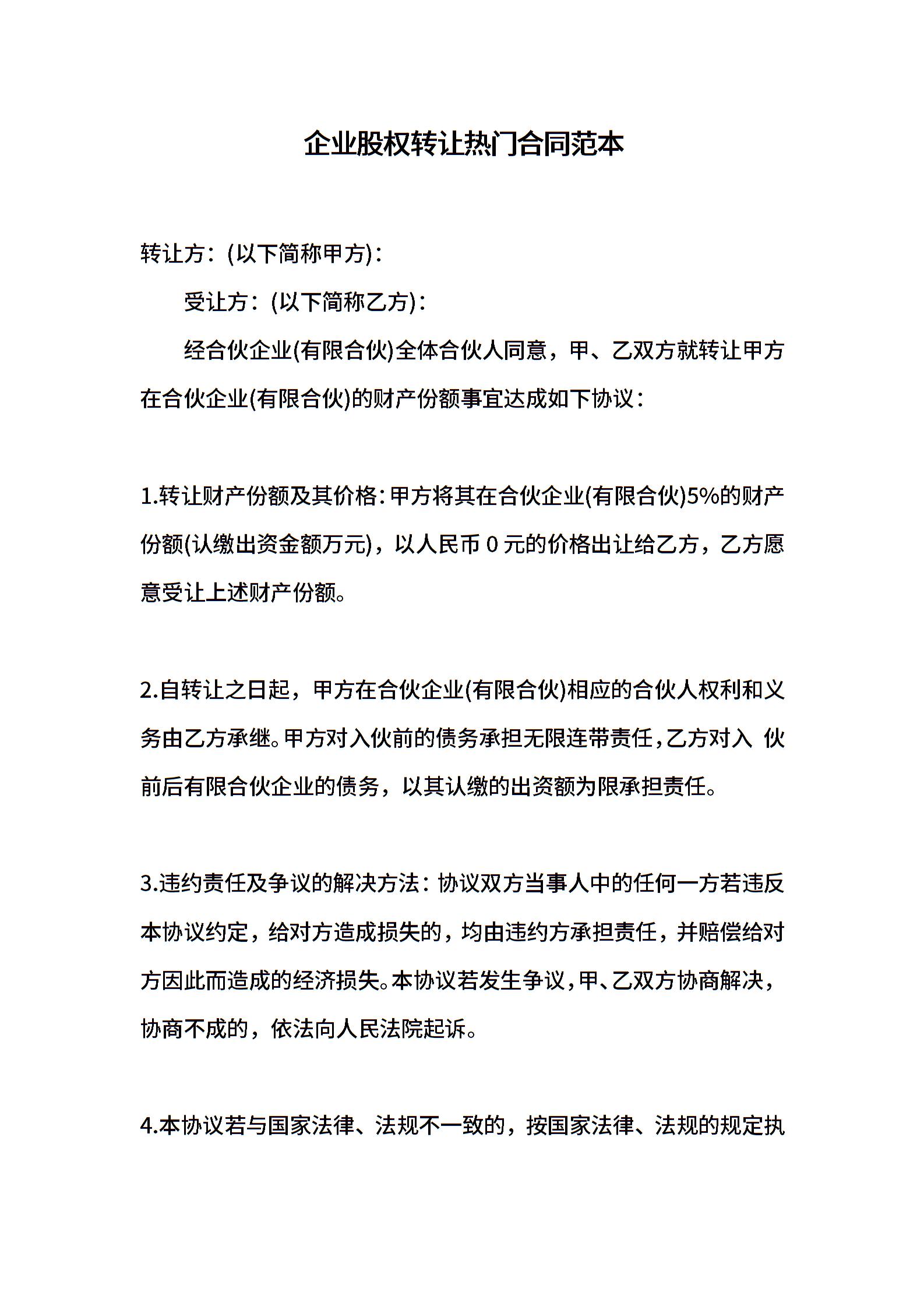 当前位置:量子办公 > 合同模板 > 股权转让协议 >