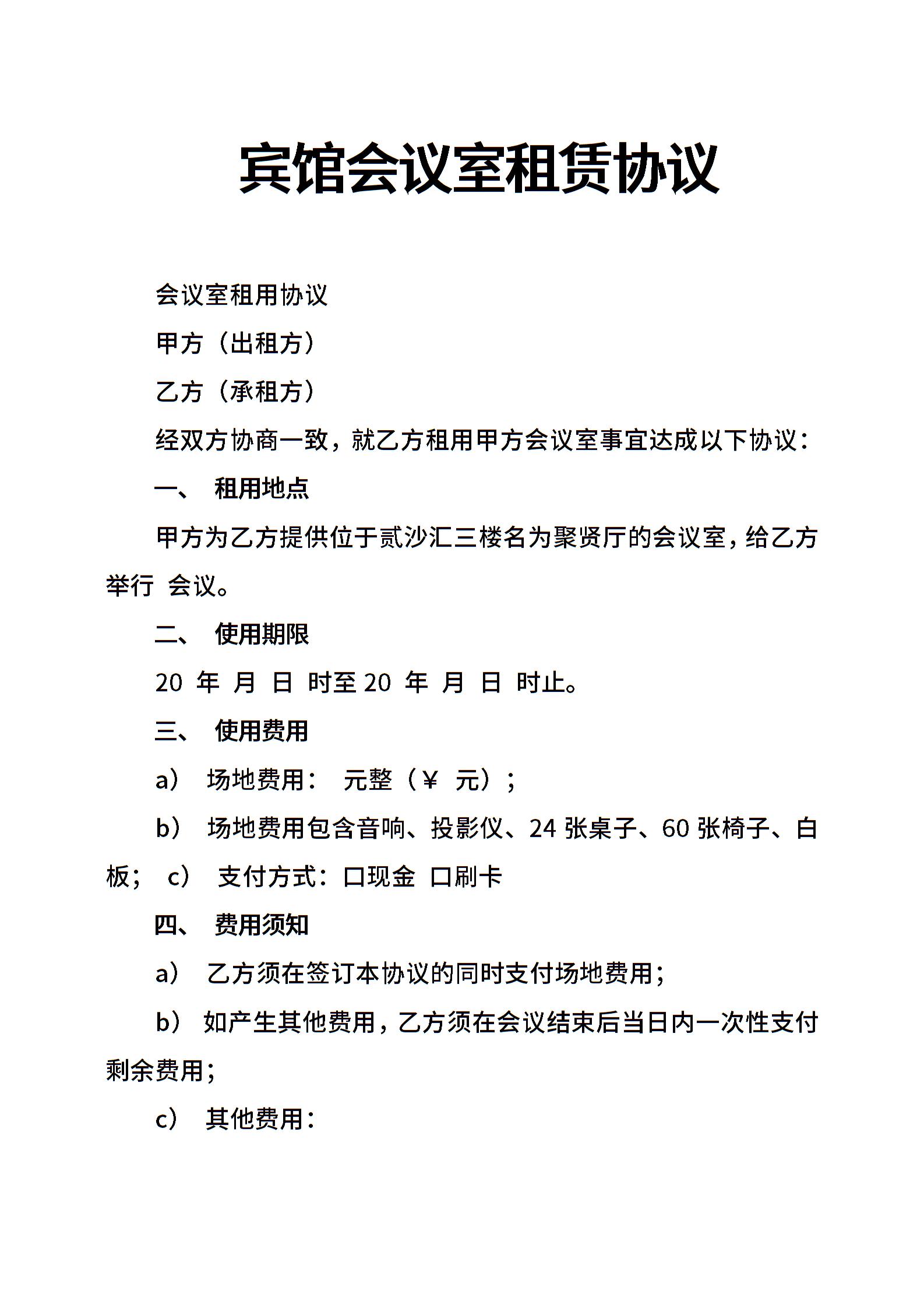 宾馆会议室租赁协议.doc