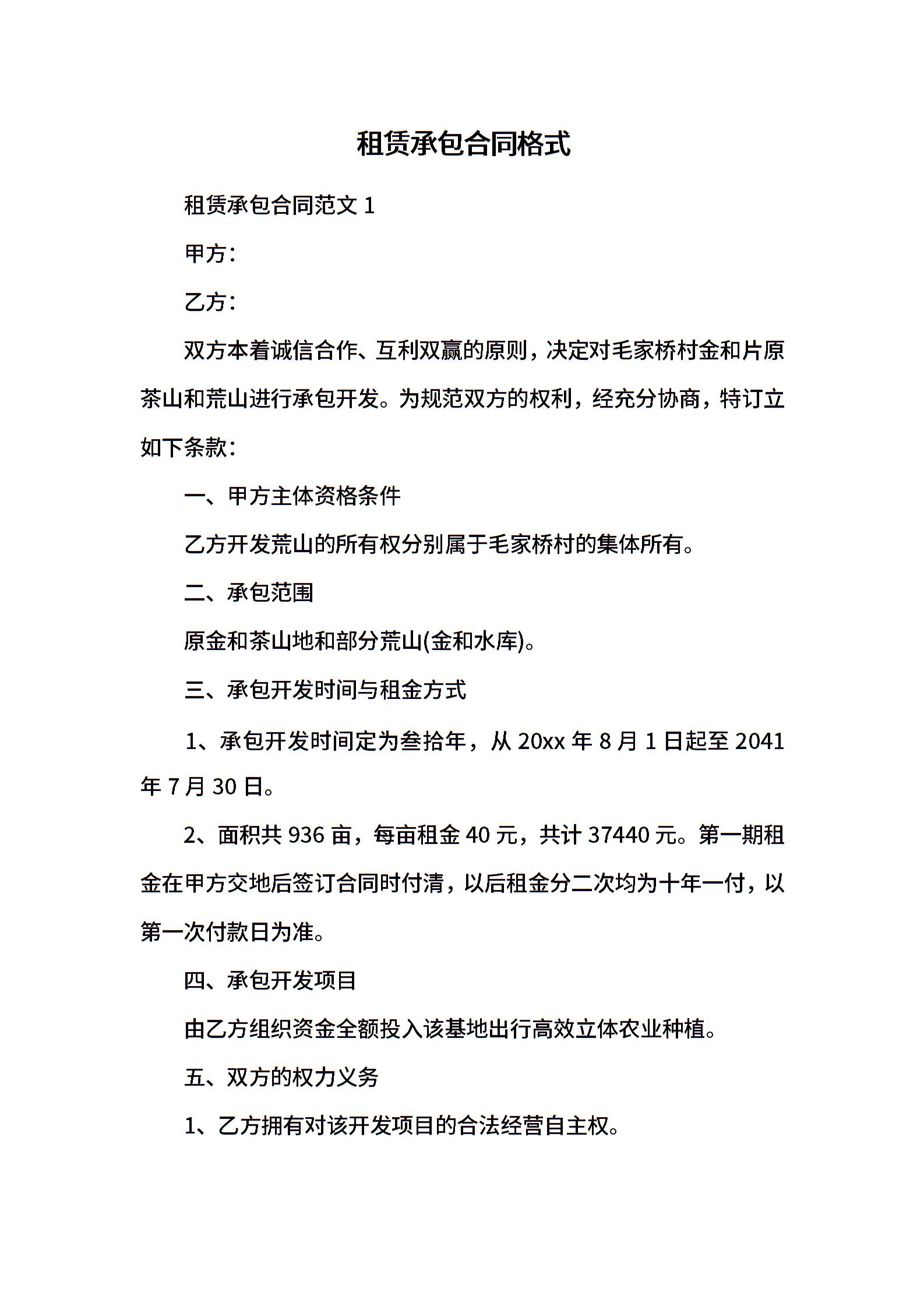 租赁承包合同格式