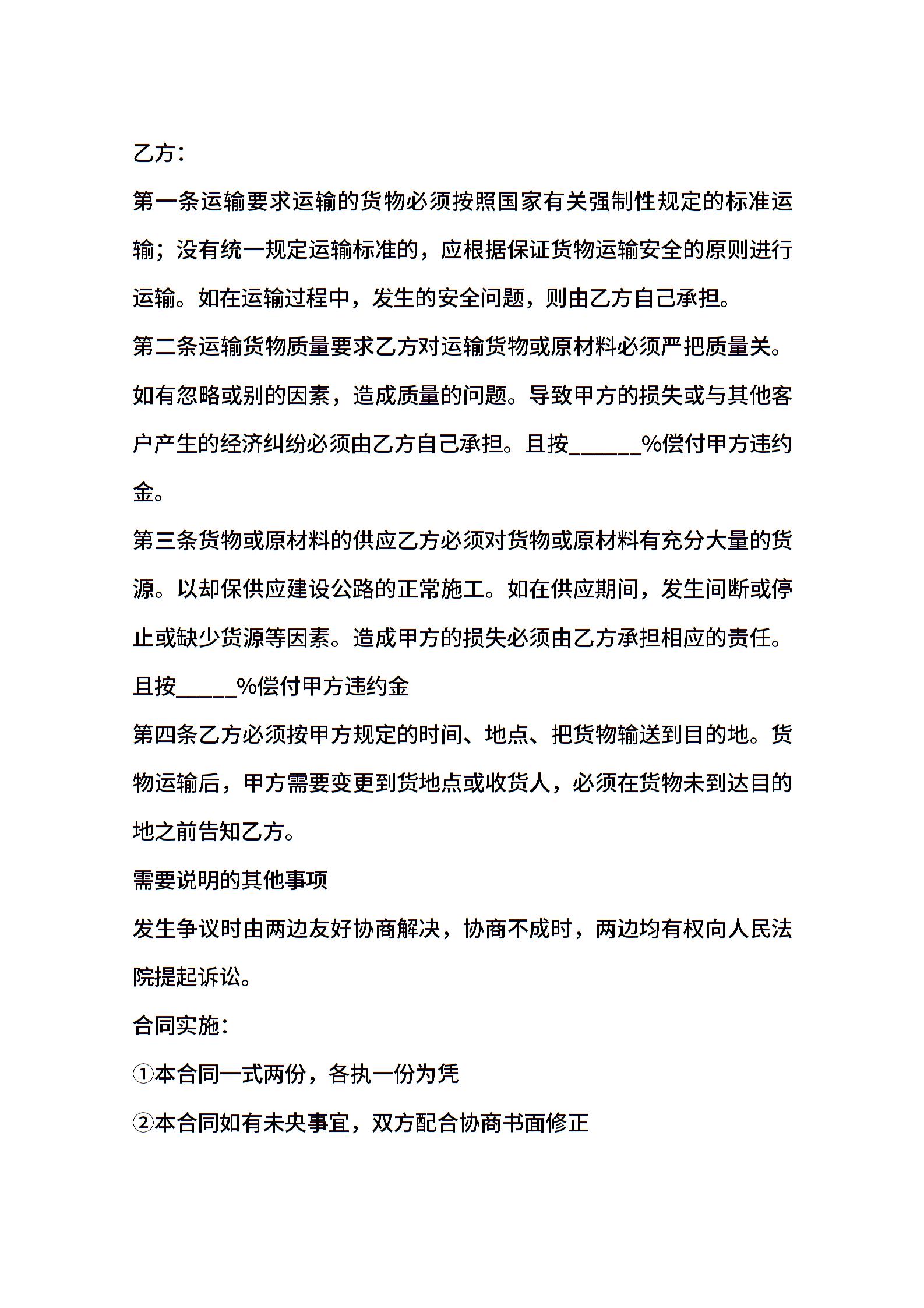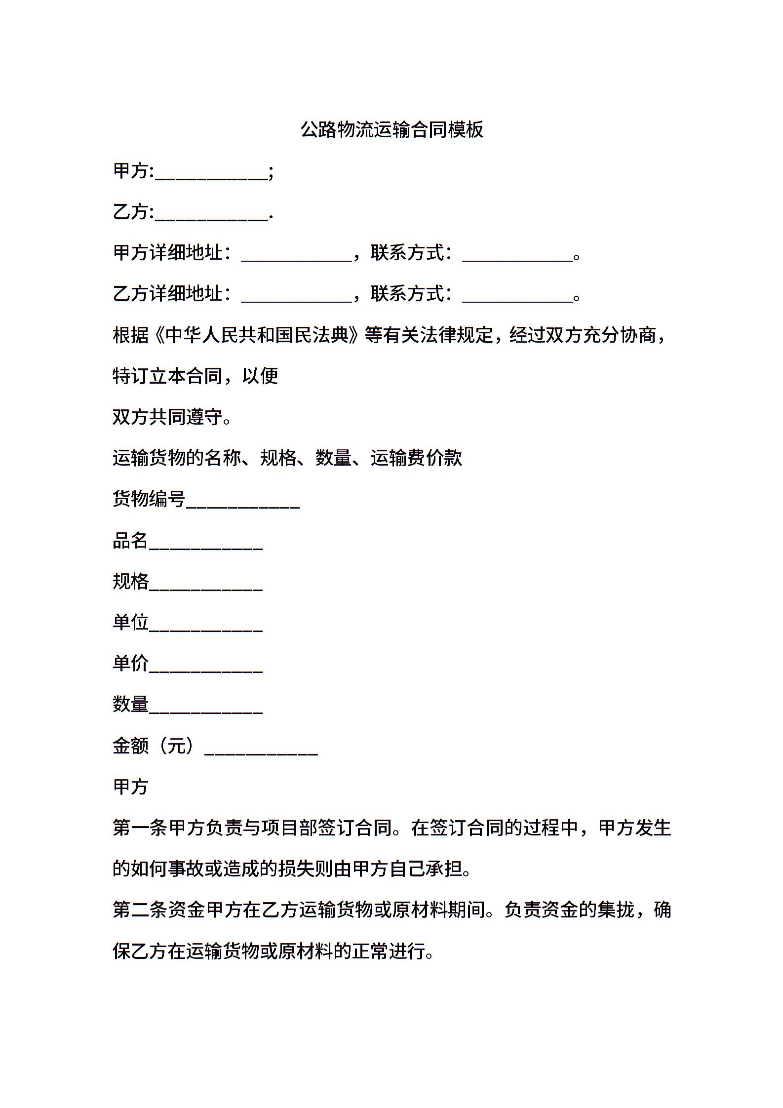 公路物流运输合同模板.doc