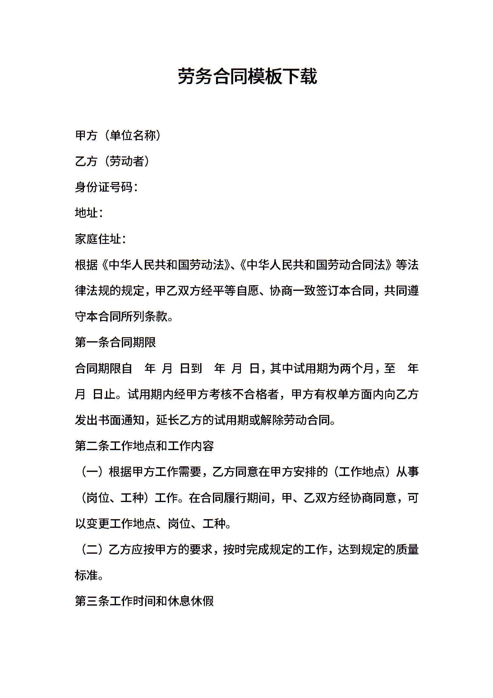当前位置:量子办公 > 合同模板 > 劳务合同 >