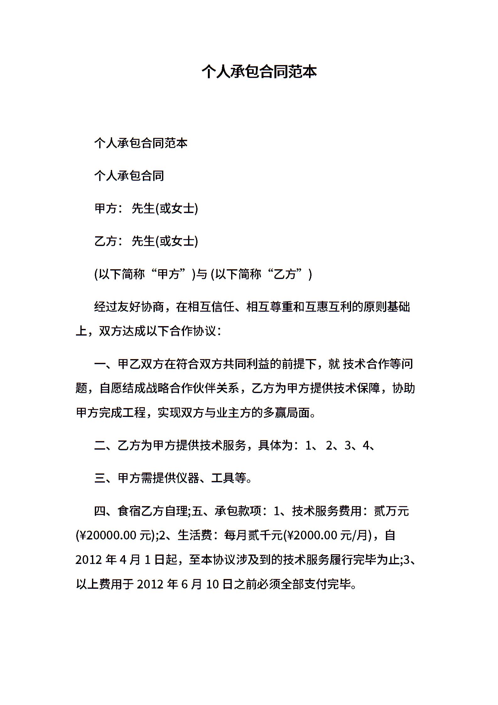 个人承包合同范本.doc