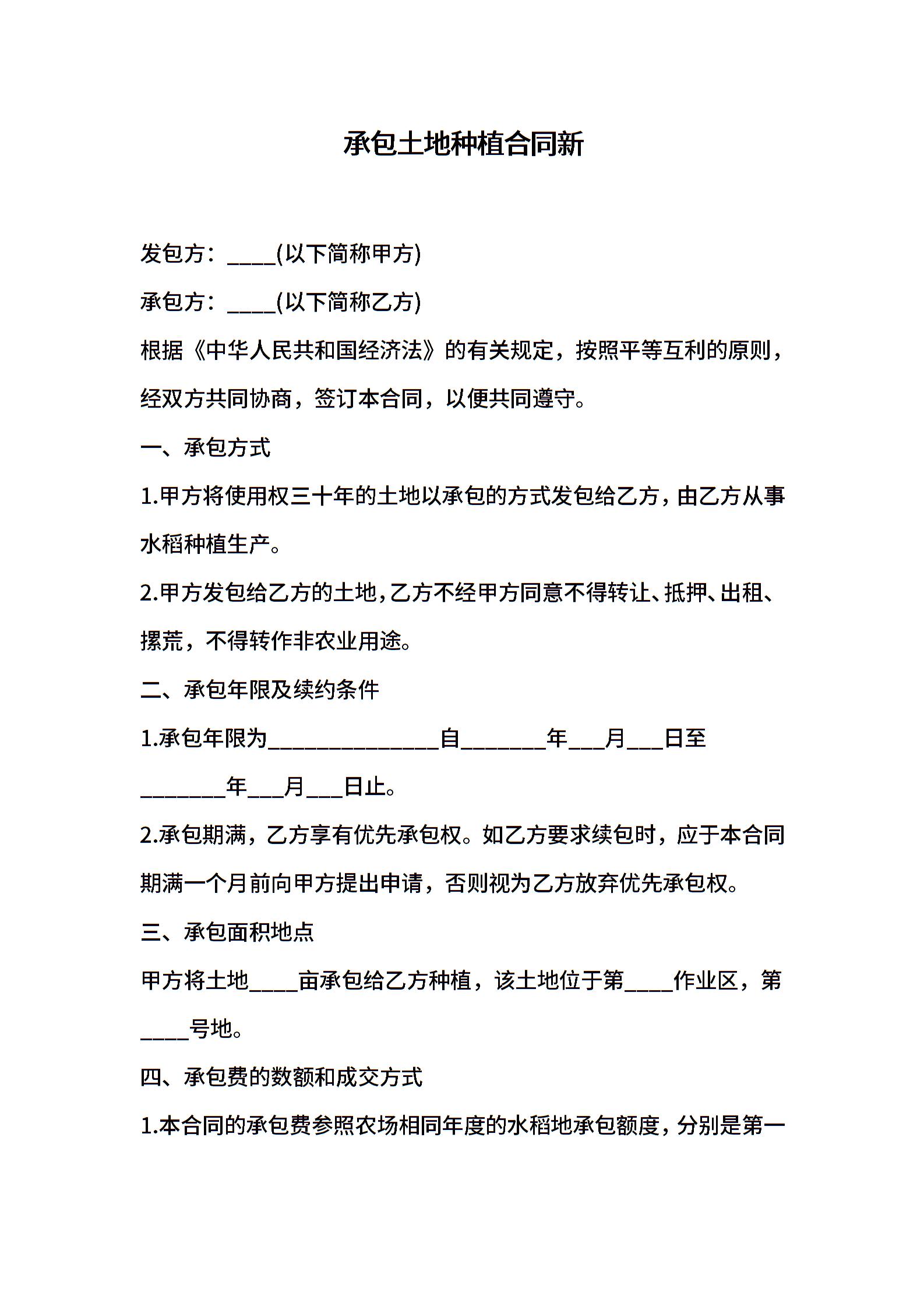 承包土地种植合同新