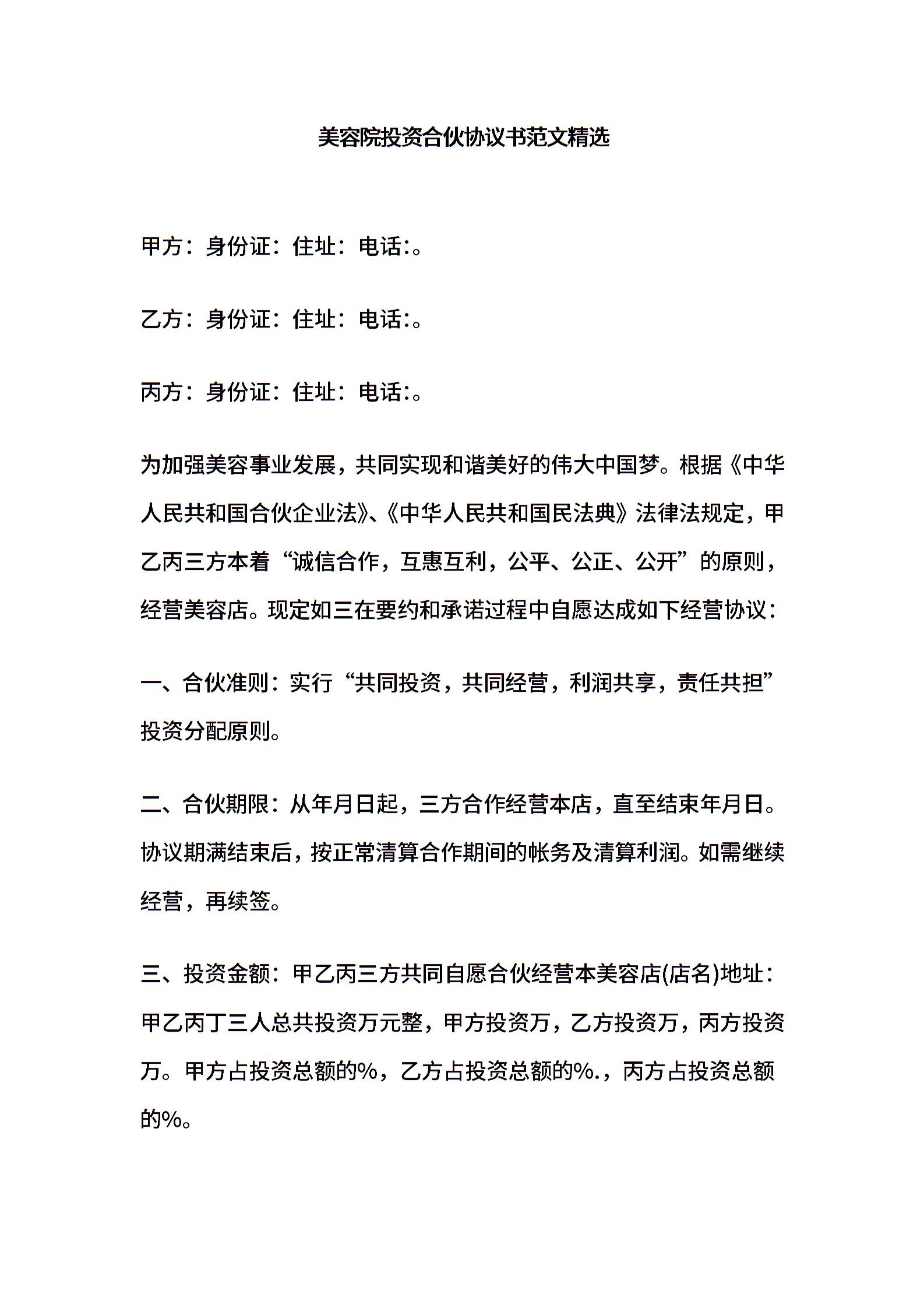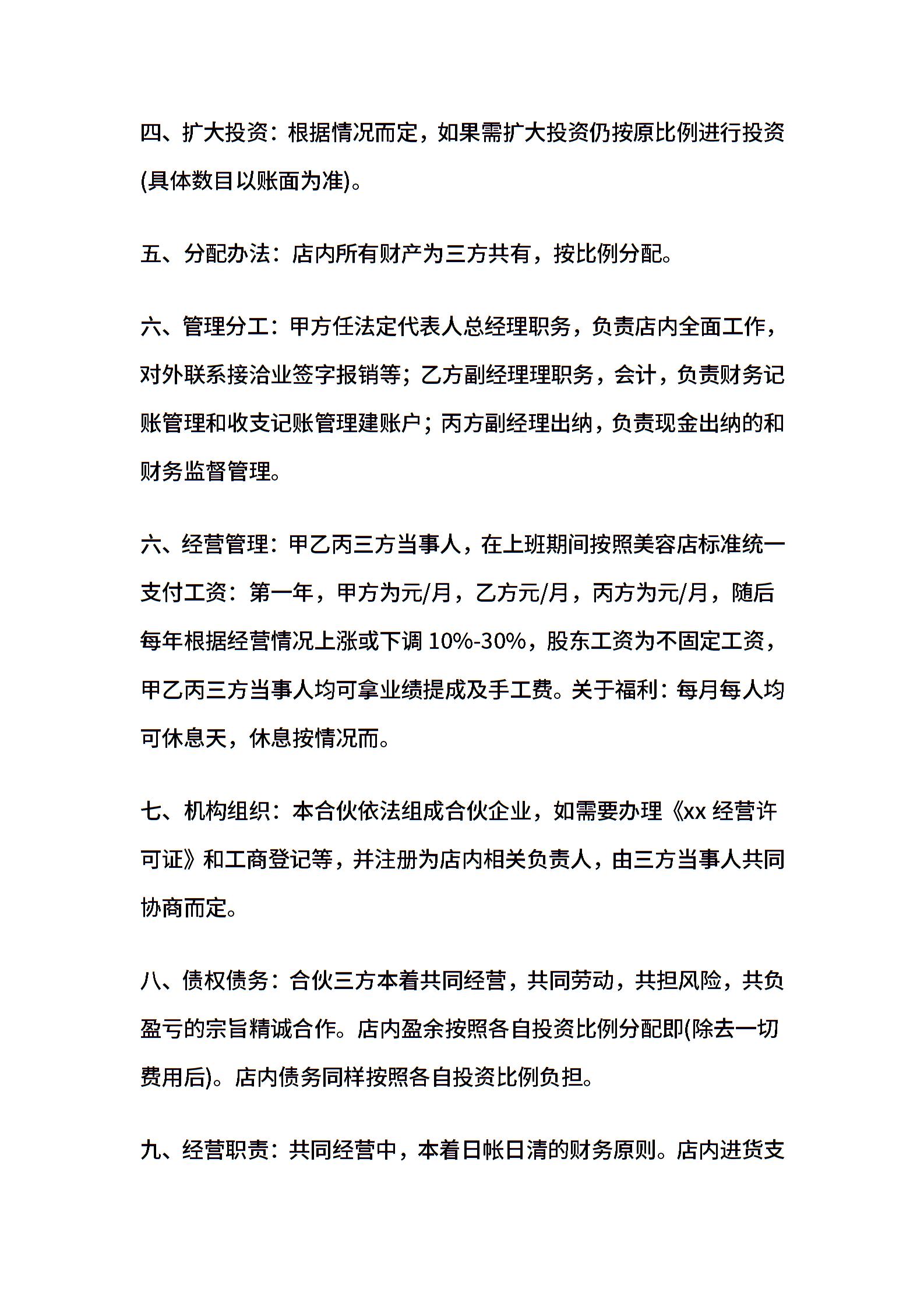美容院投资合伙协议书范文精选.doc