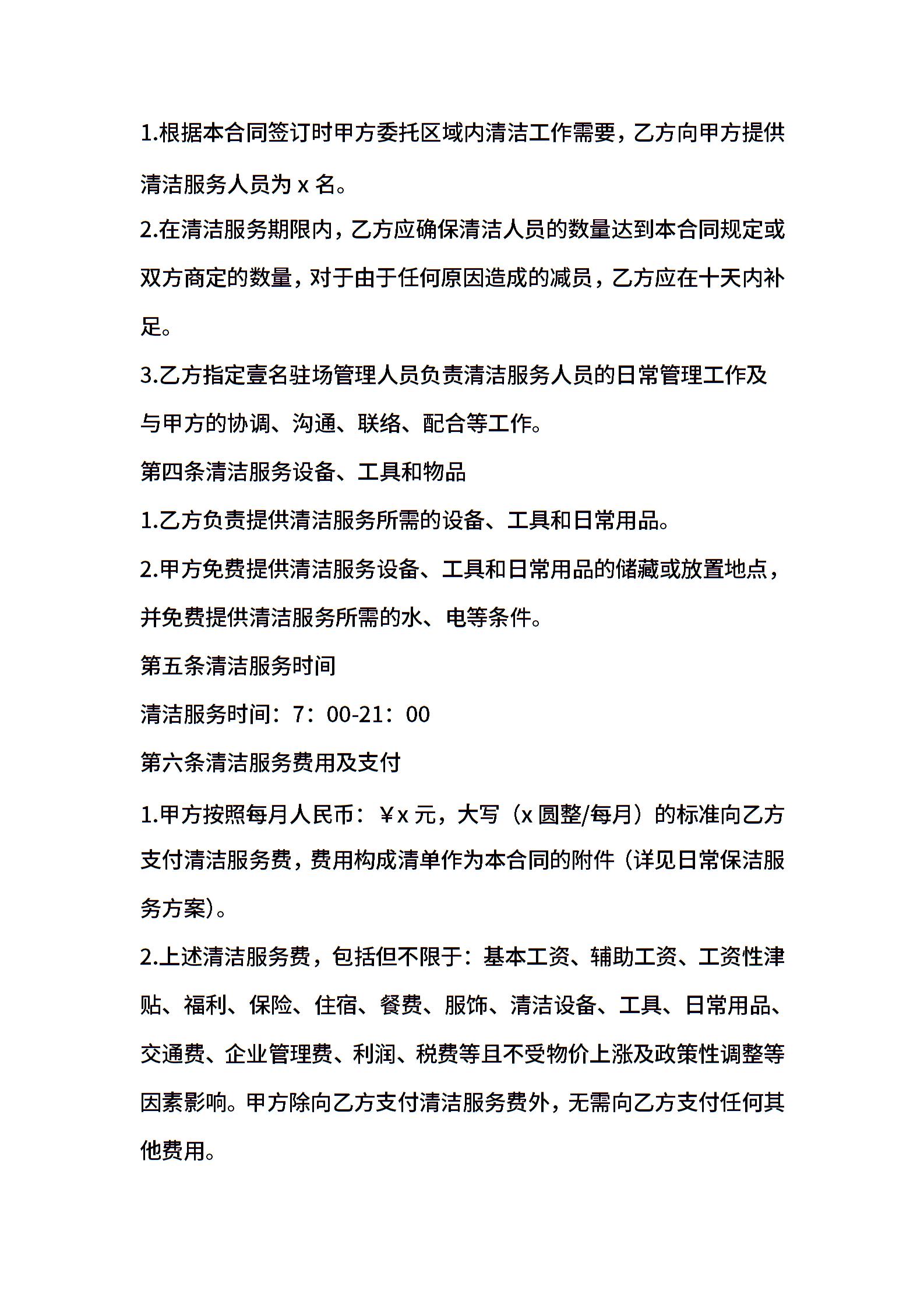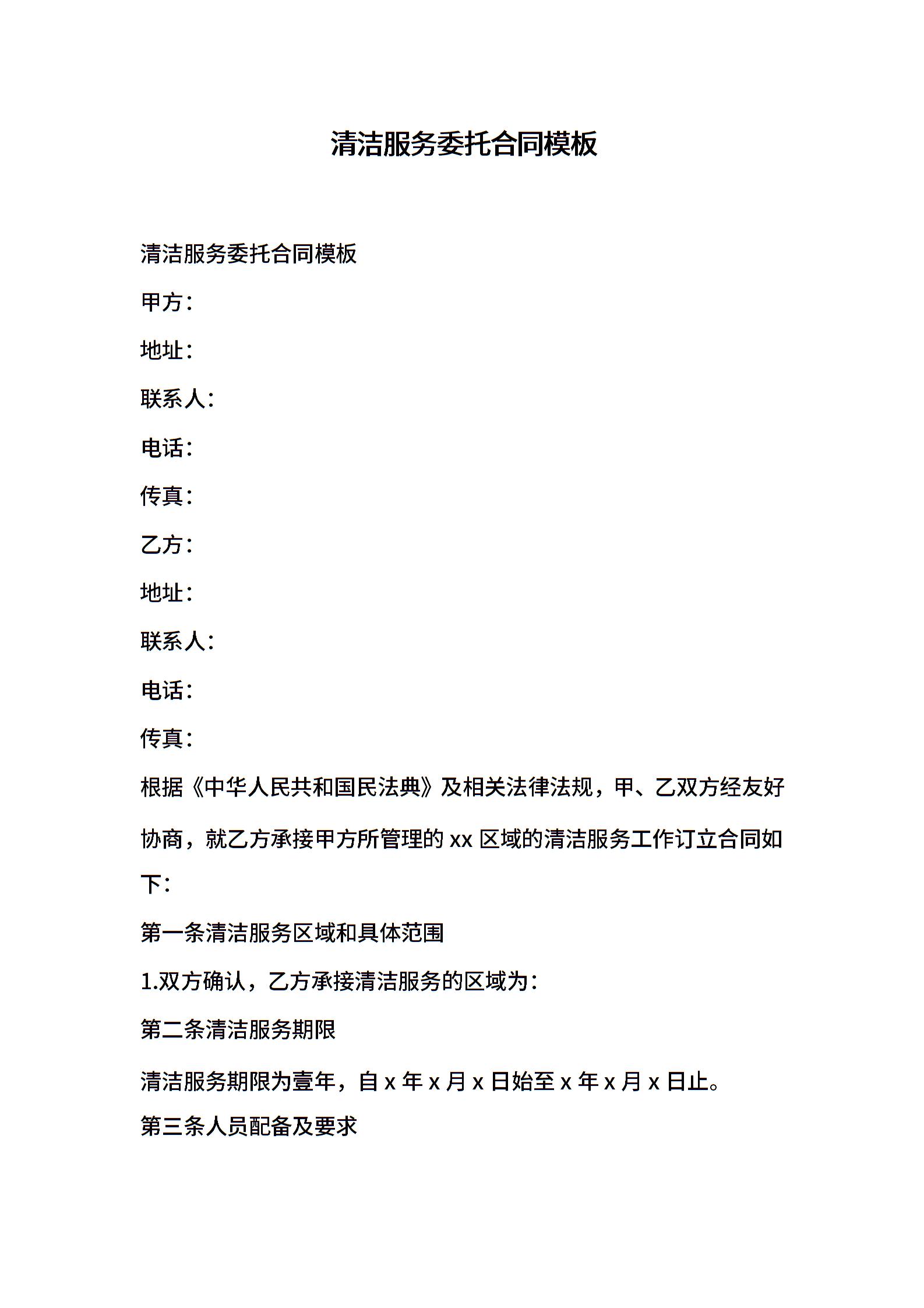 清洁服务委托合同模板