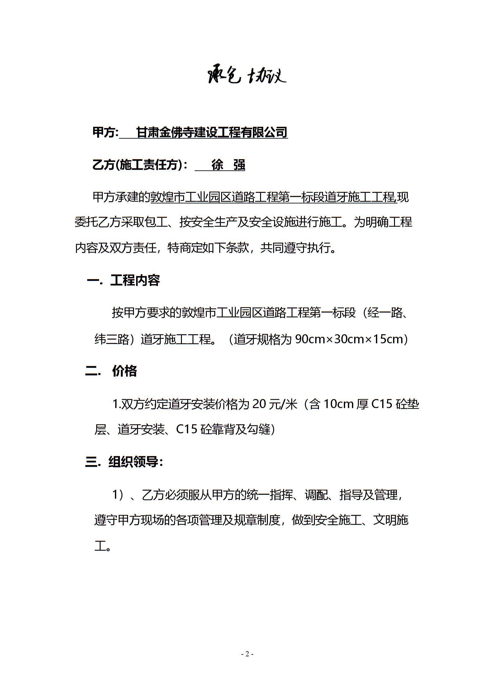 路缘石施工合同