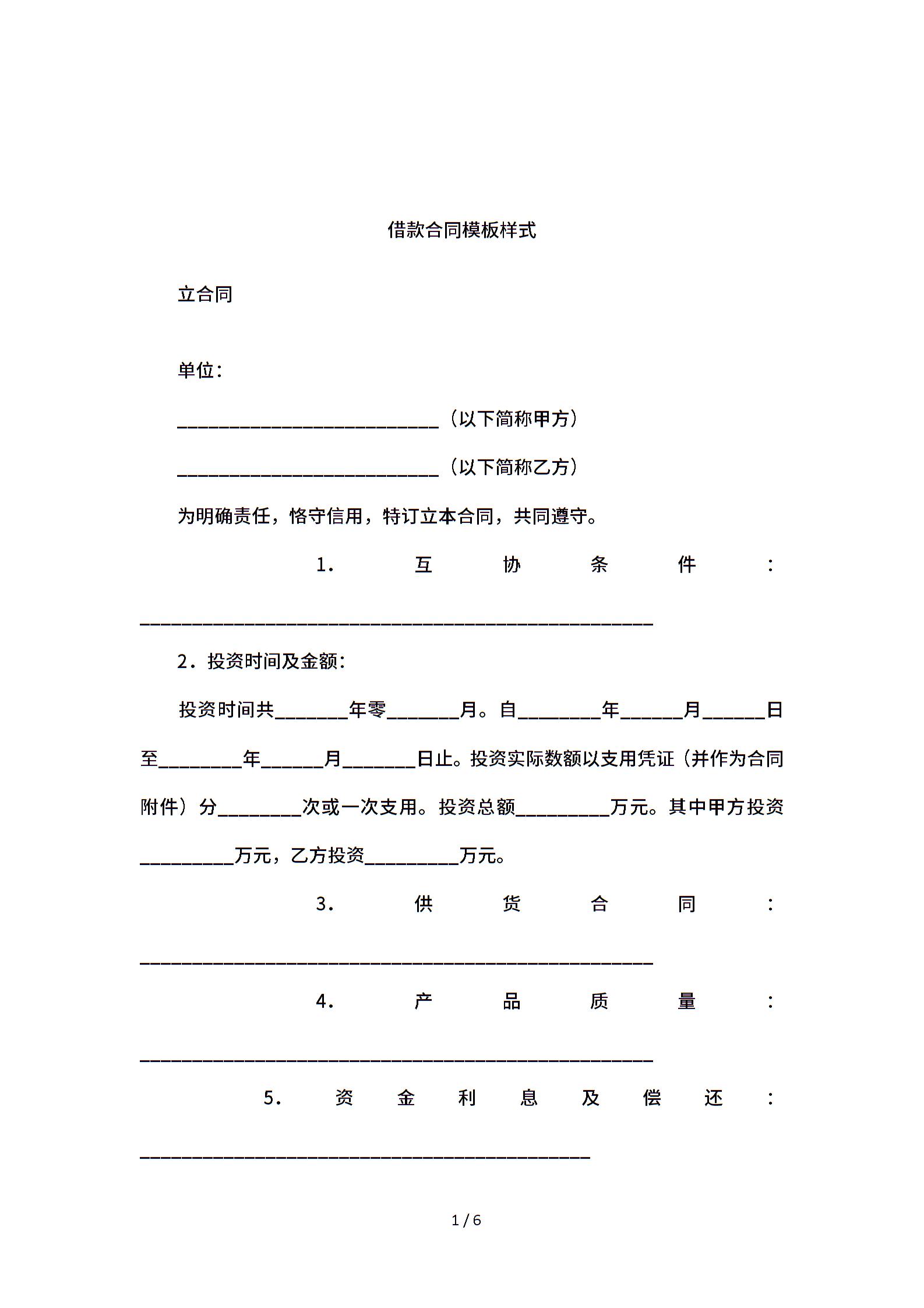 借款合同模板样式.doc