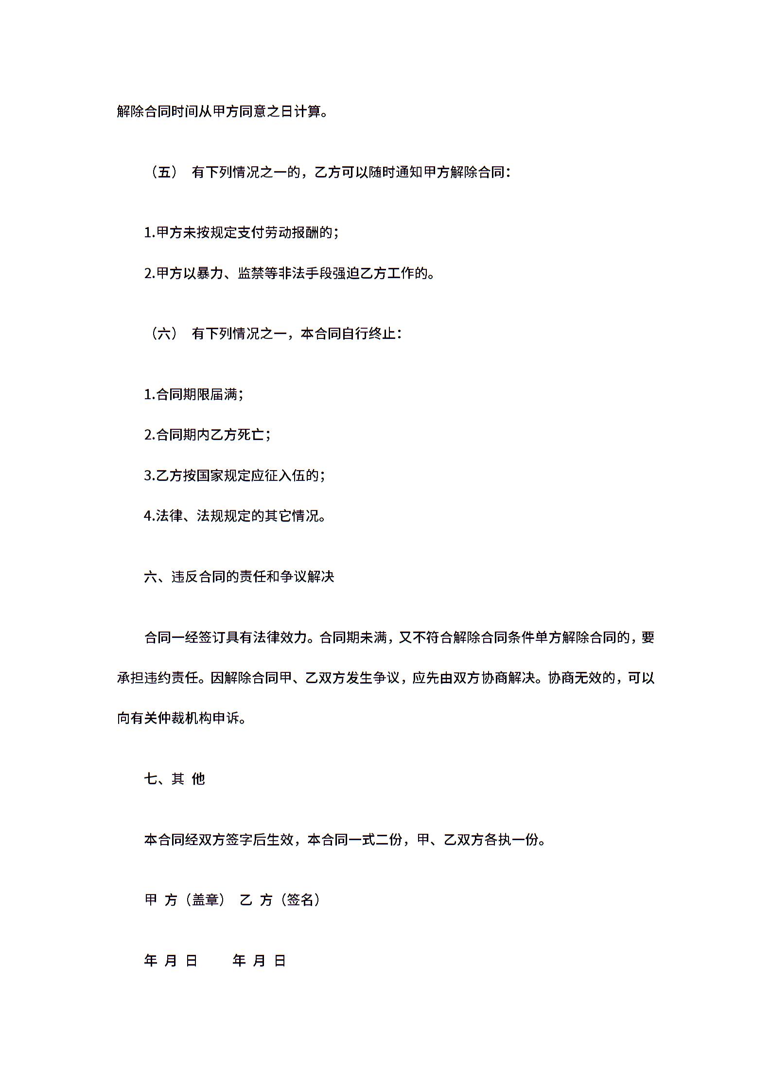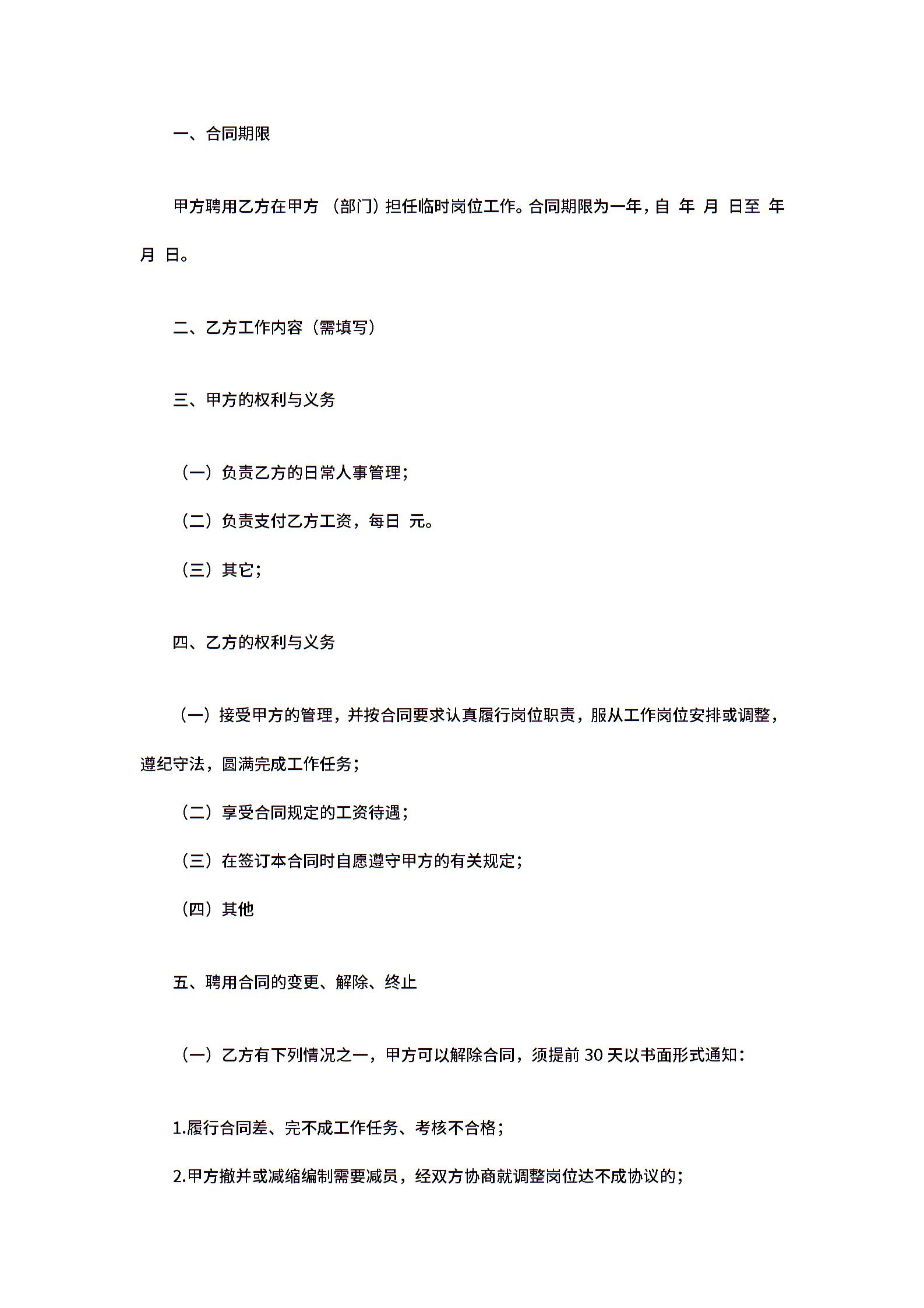 • 分类 聘用合同