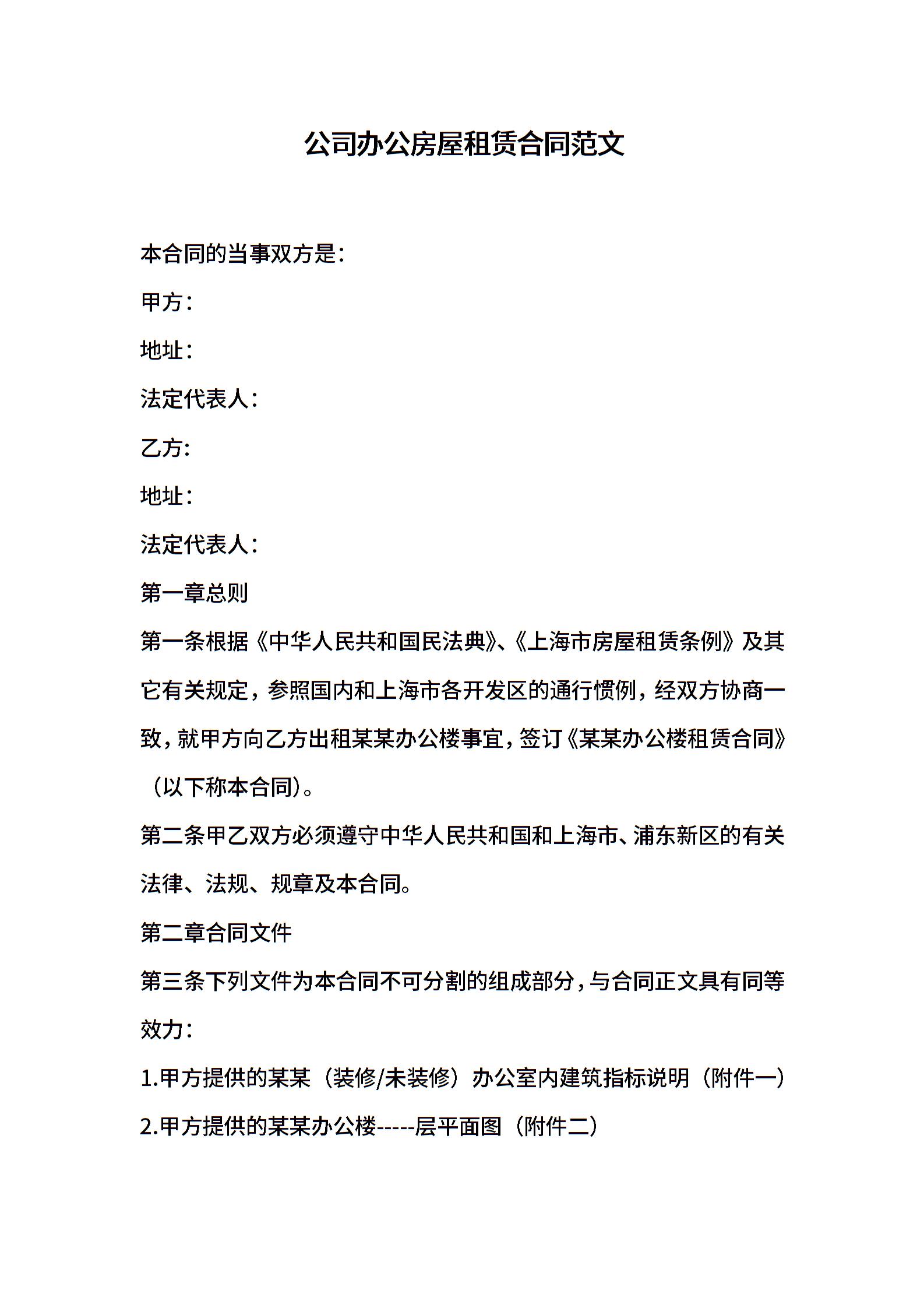 公司办公房屋租赁合同范文