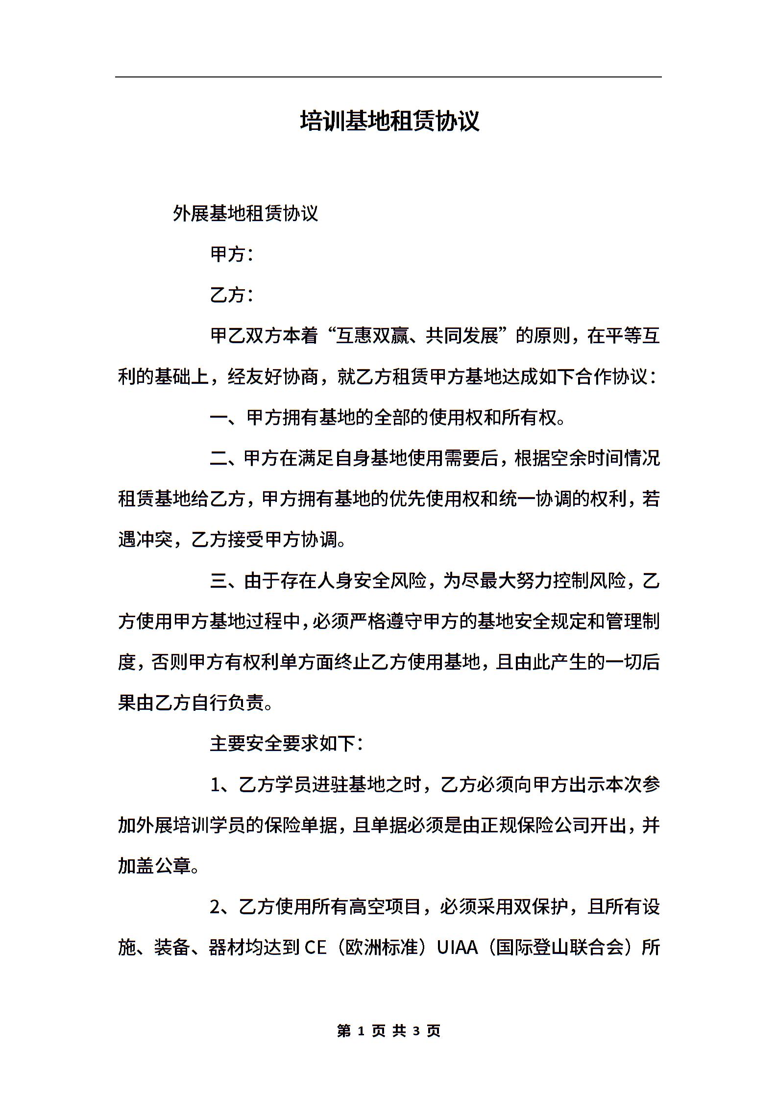 培训基地租赁协议