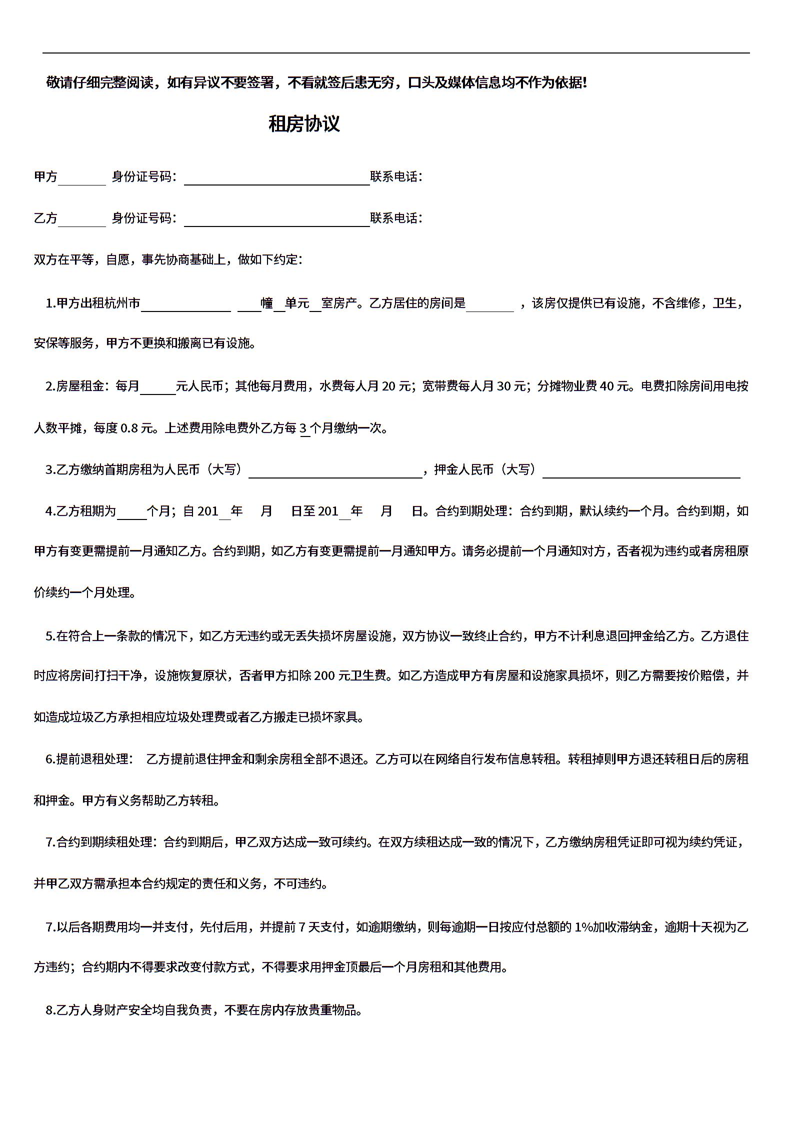 租房合同范本简单版.doc