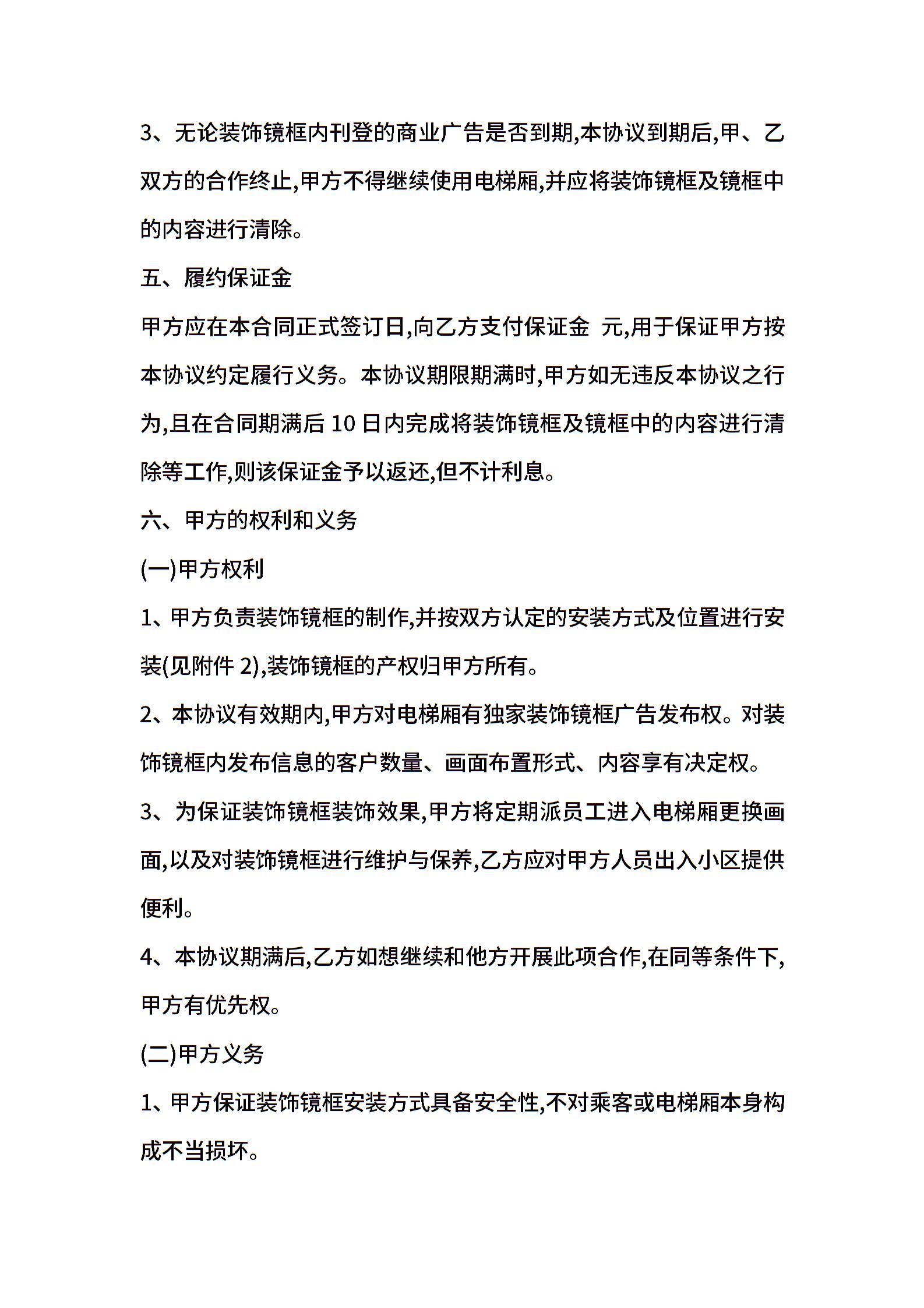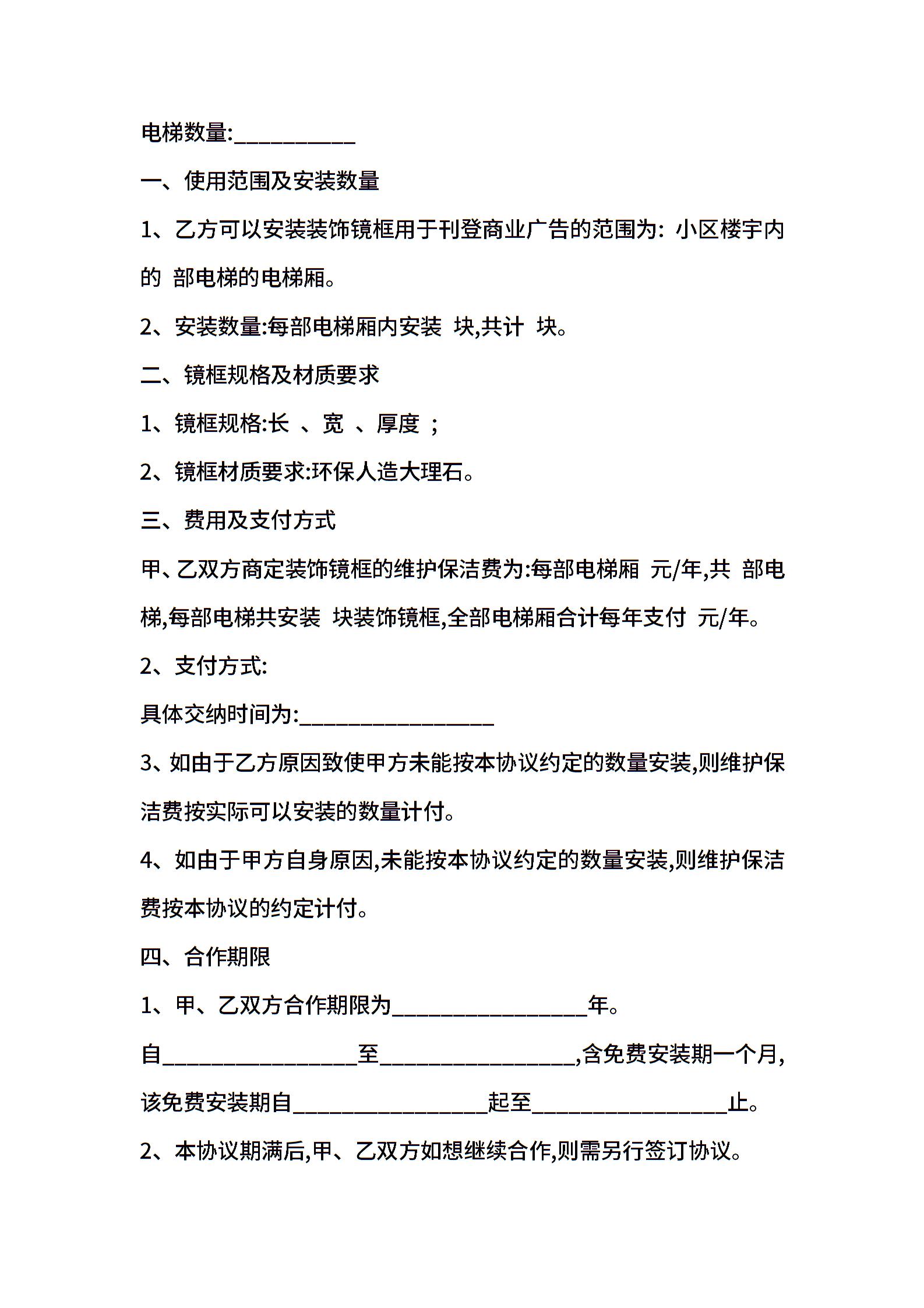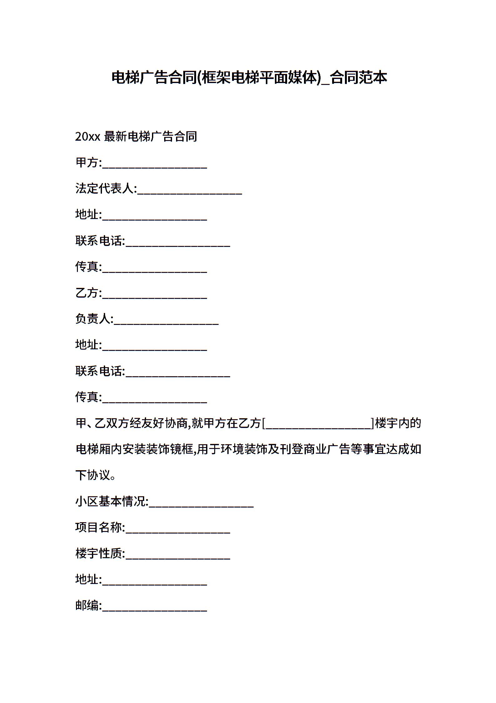 电梯广告合同(框架电梯平面媒体)_合同范本