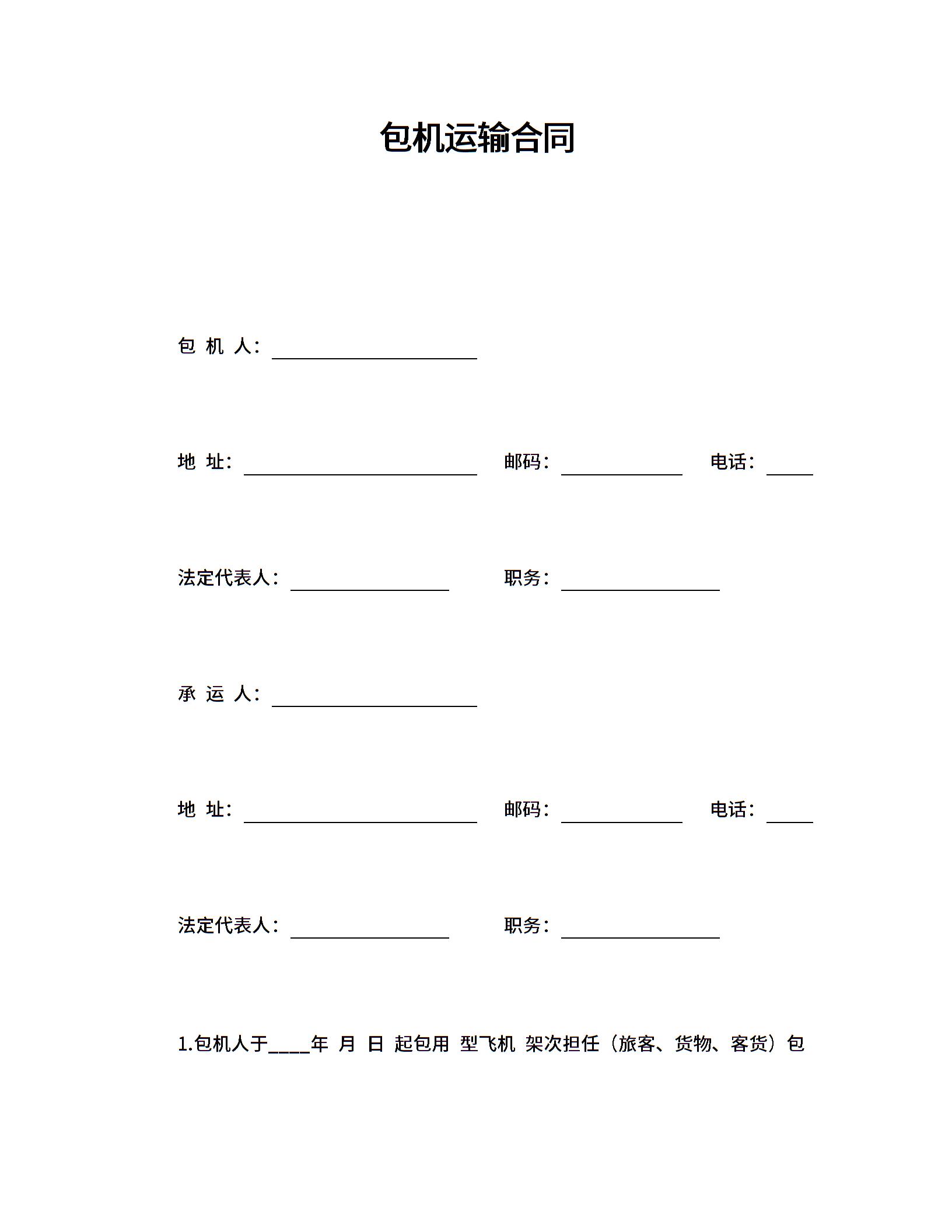 包机运输合同(可编辑模板).doc