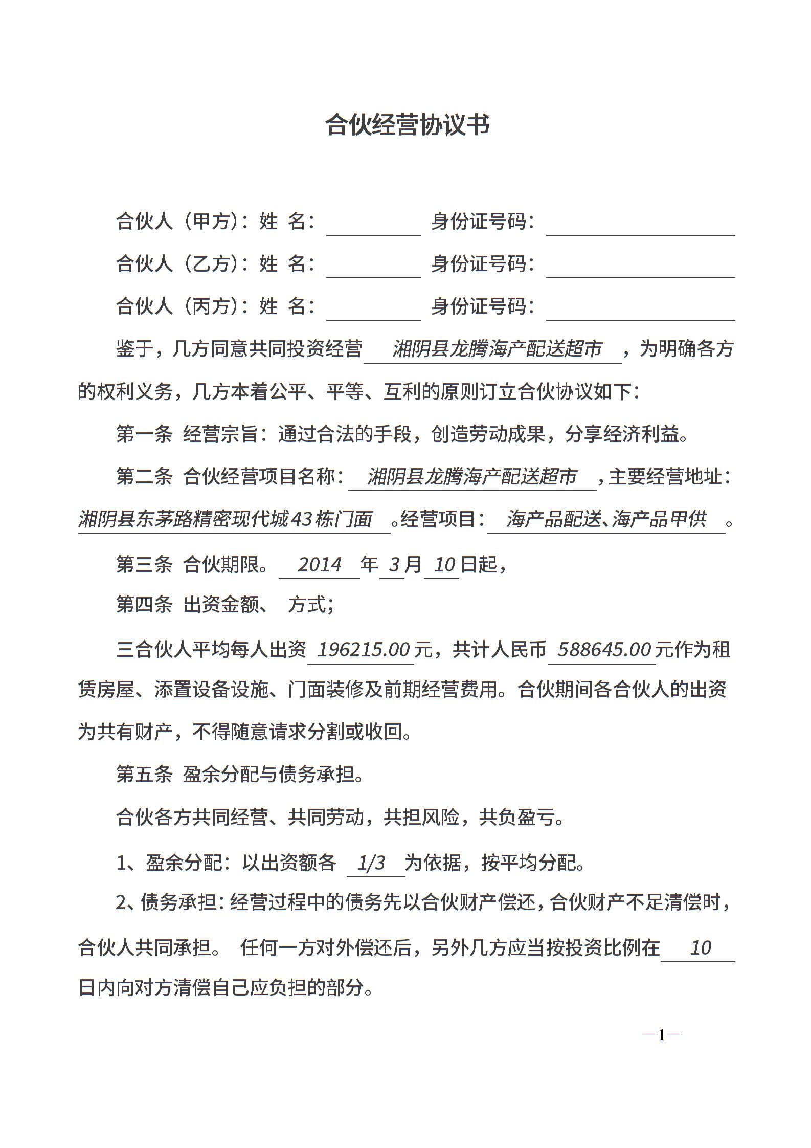 合伙经营协议书三人