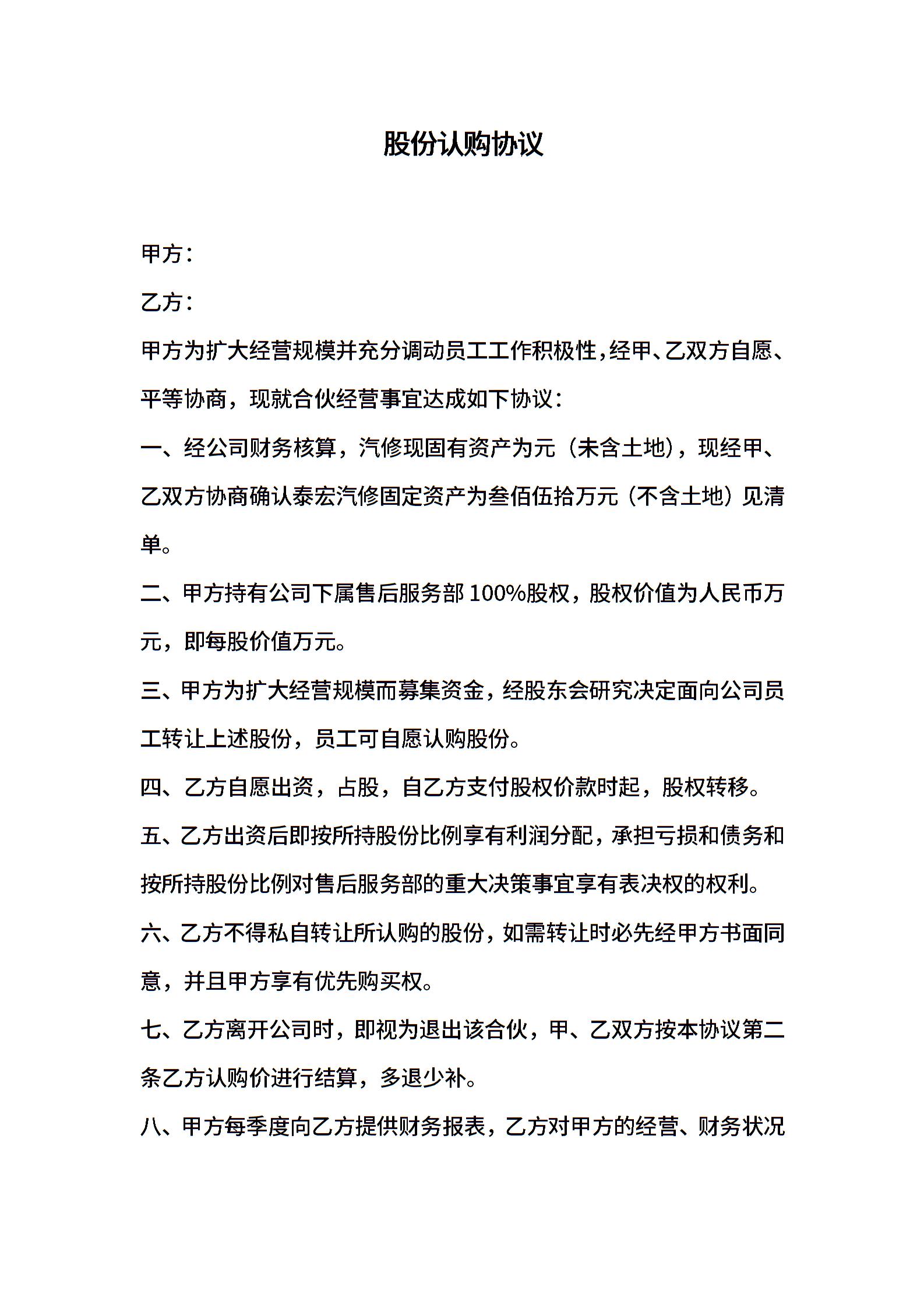 当前位置:量子办公 > 合同模板 > 认购协议 >