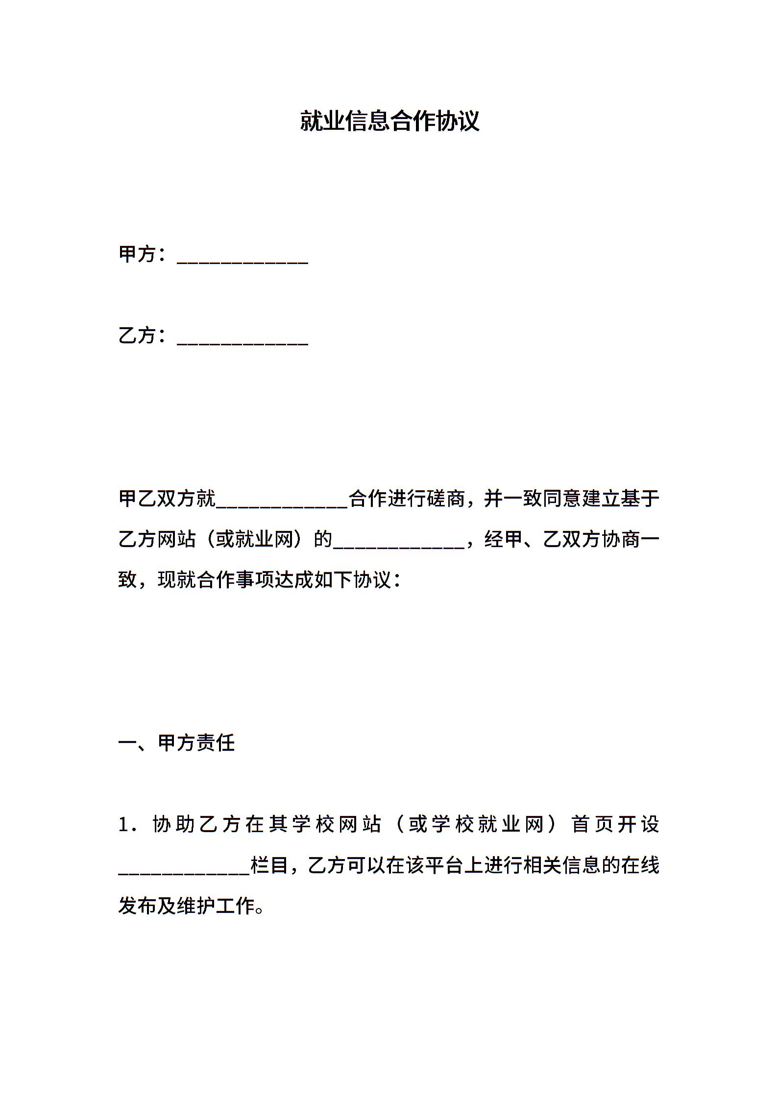 就业信息合作协议