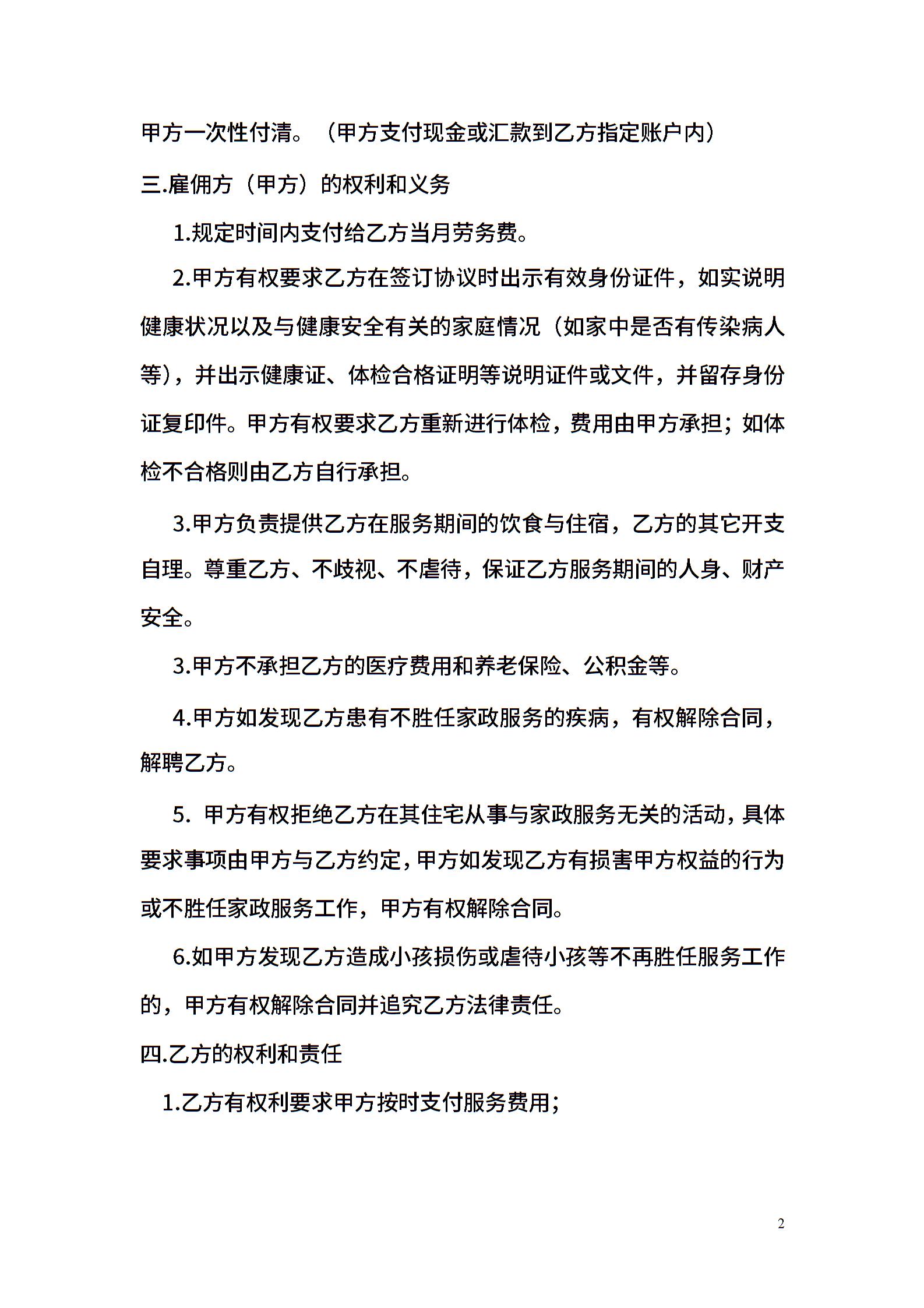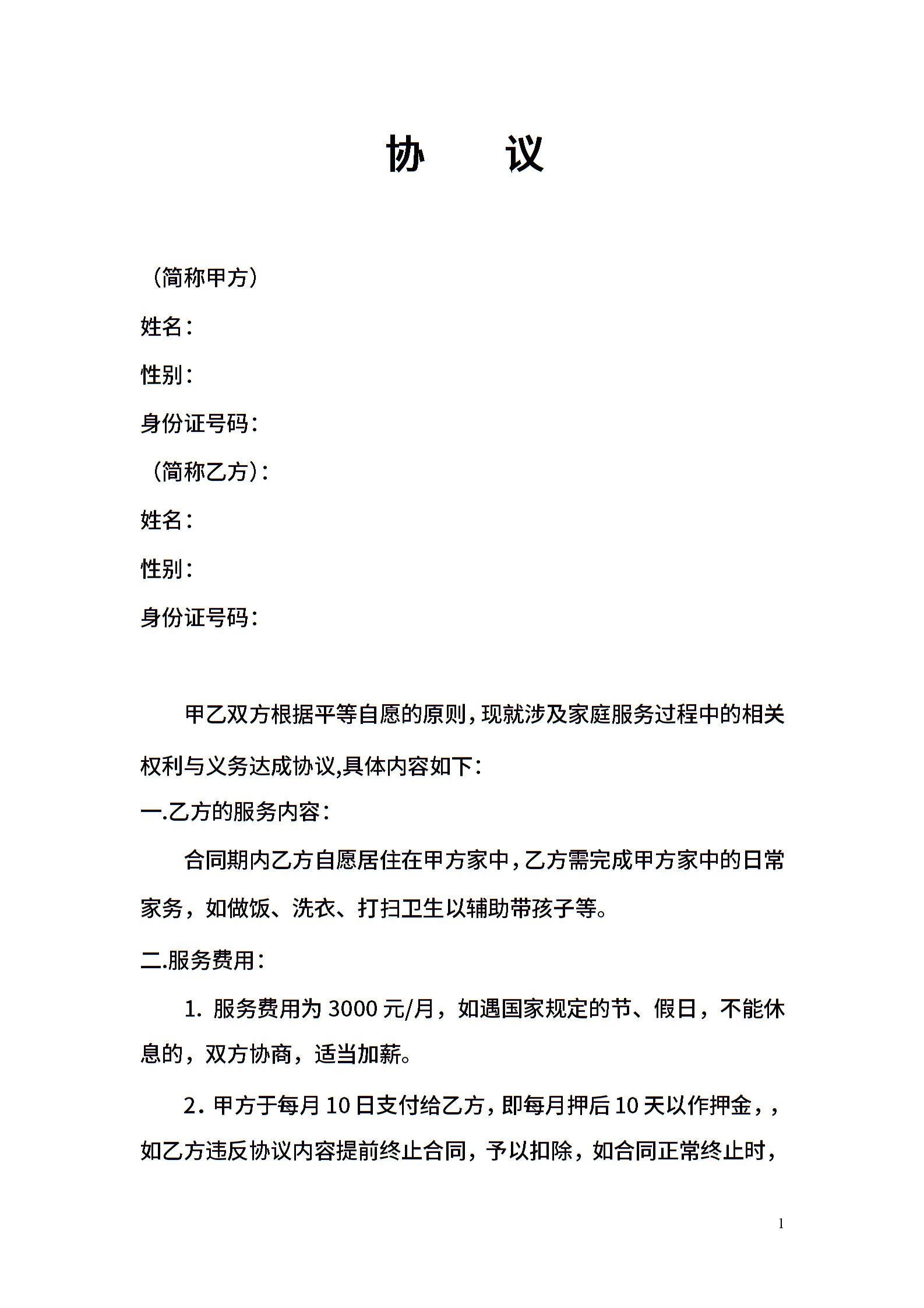 雇主与保姆协议(无中介)模板