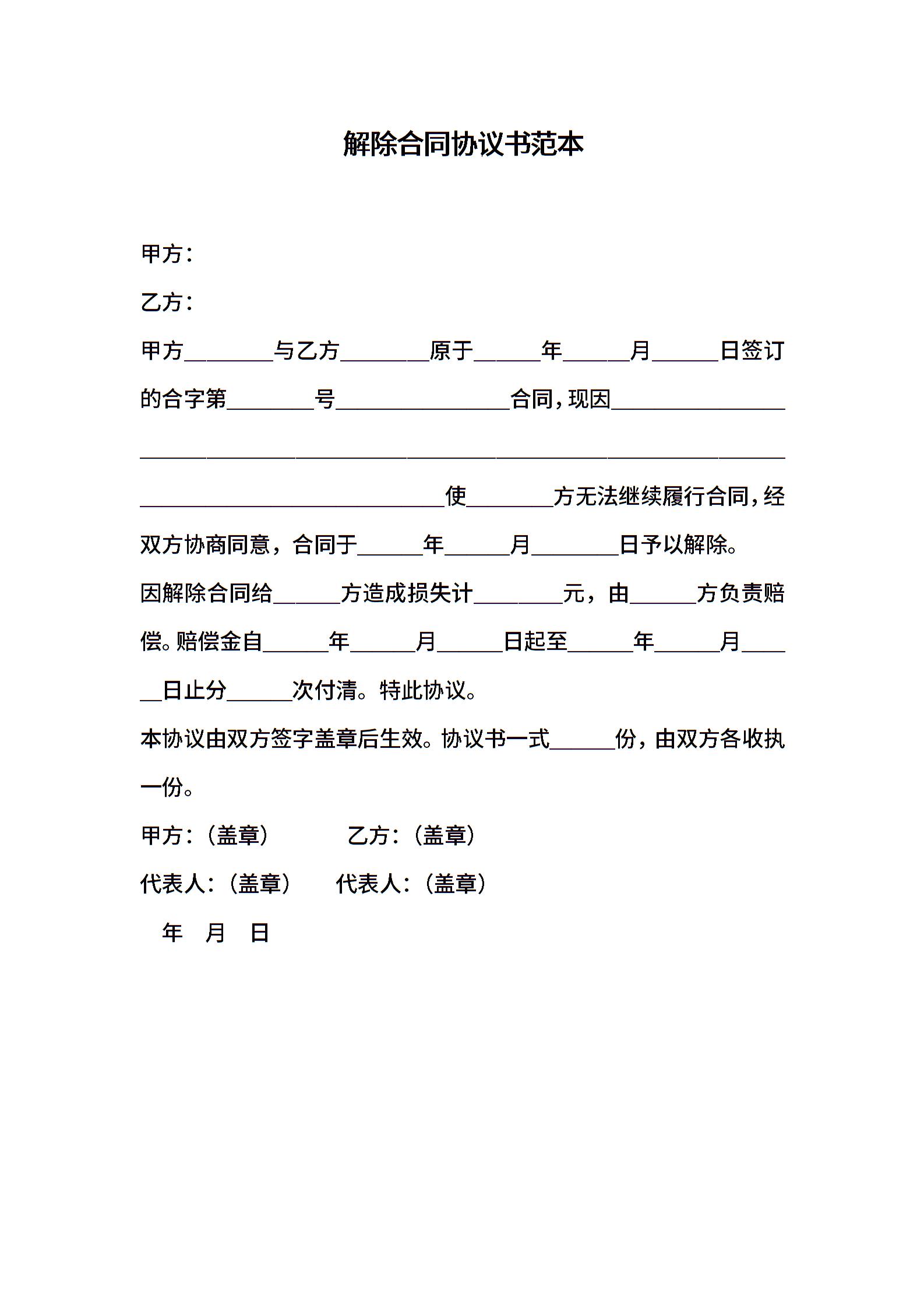 解除合同协议书2