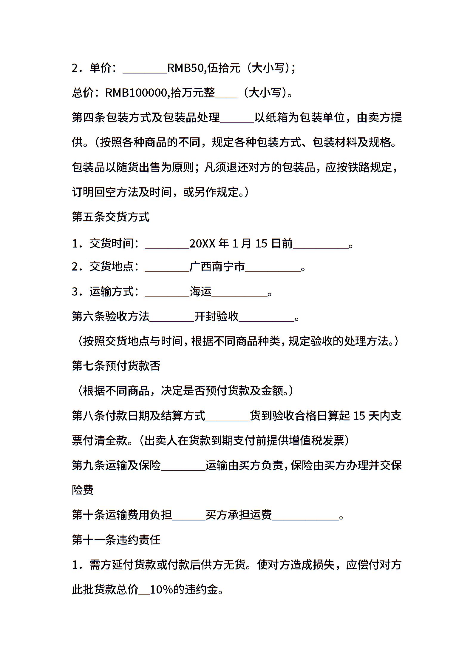 普通商品买卖合同范本