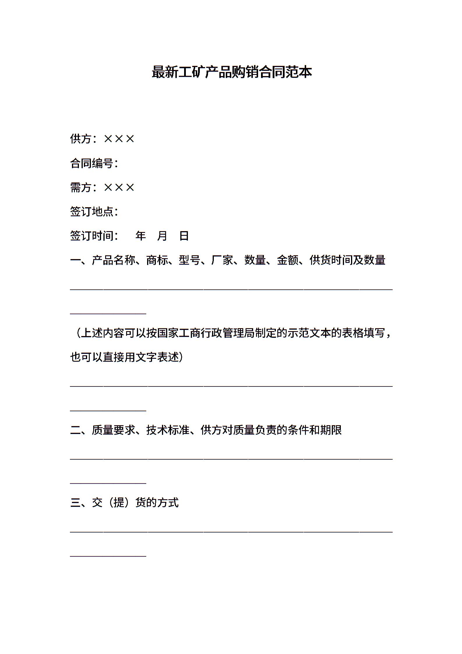 最新工矿产品购销合同范本