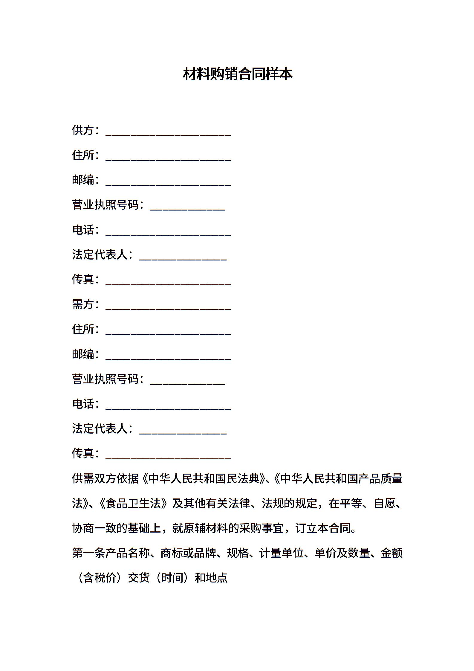 材料购销合同样本