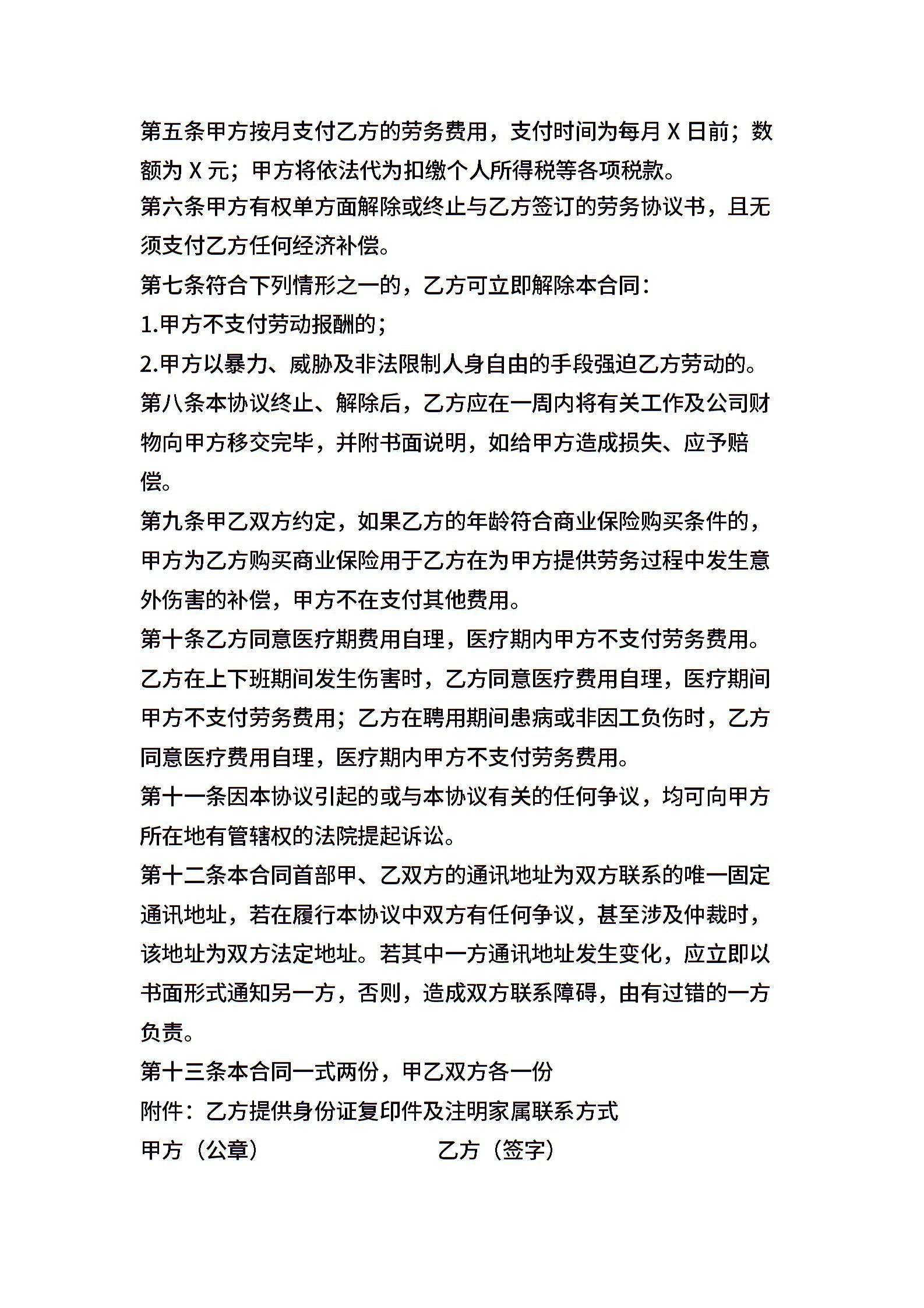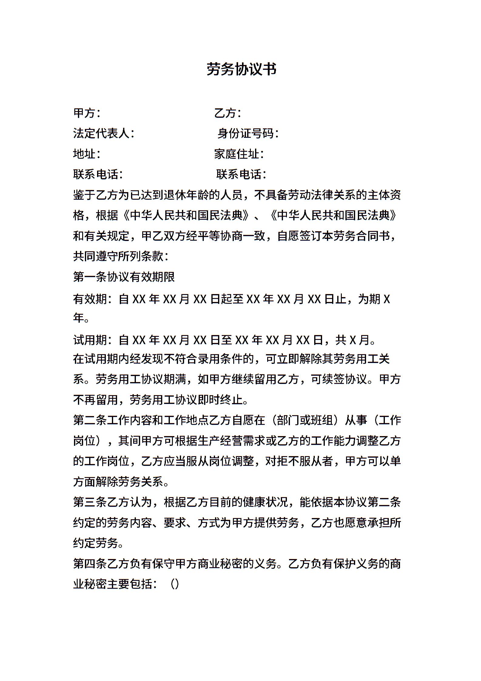 当前位置:量子办公 > 合同模板 > 劳务合同 >
