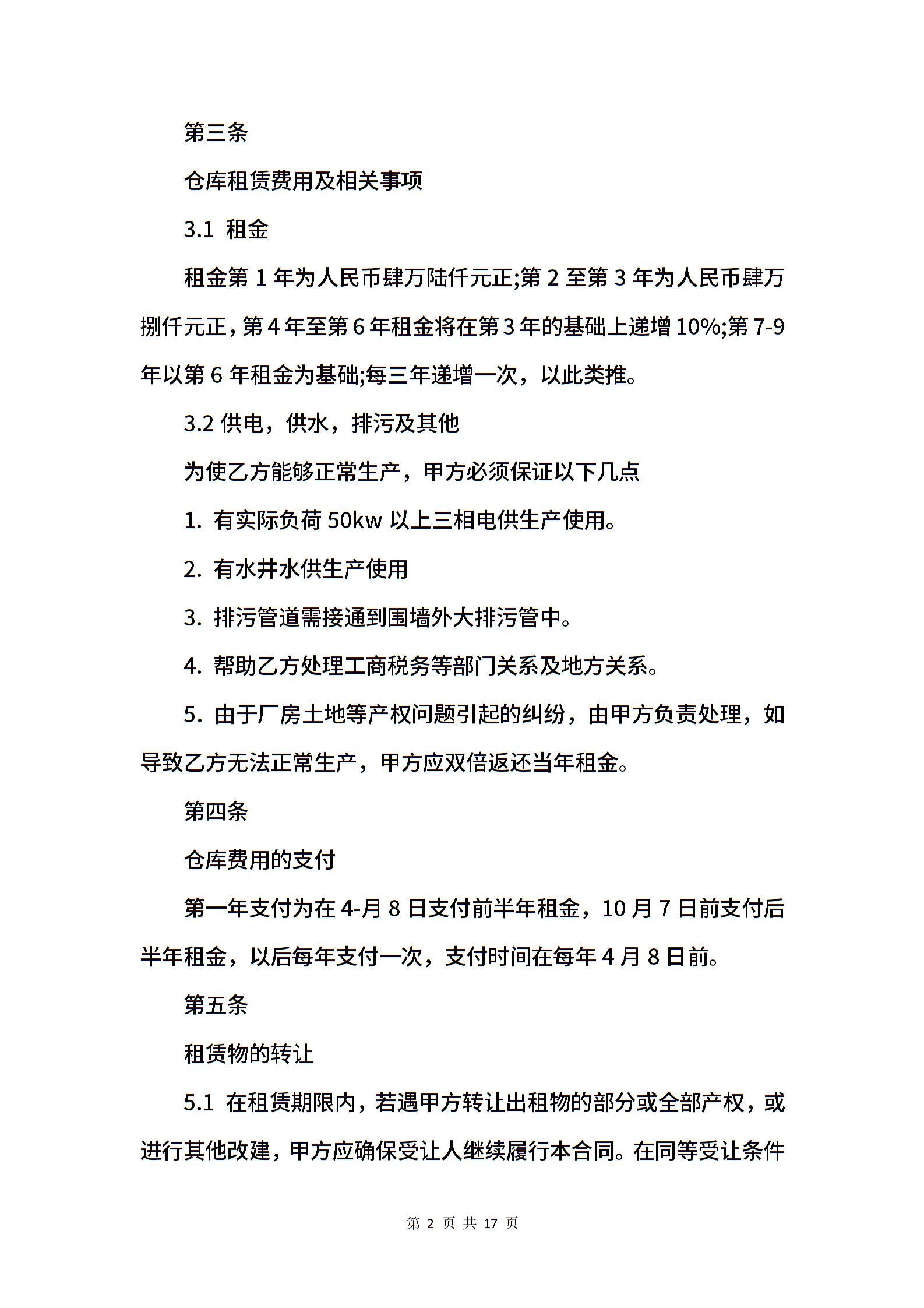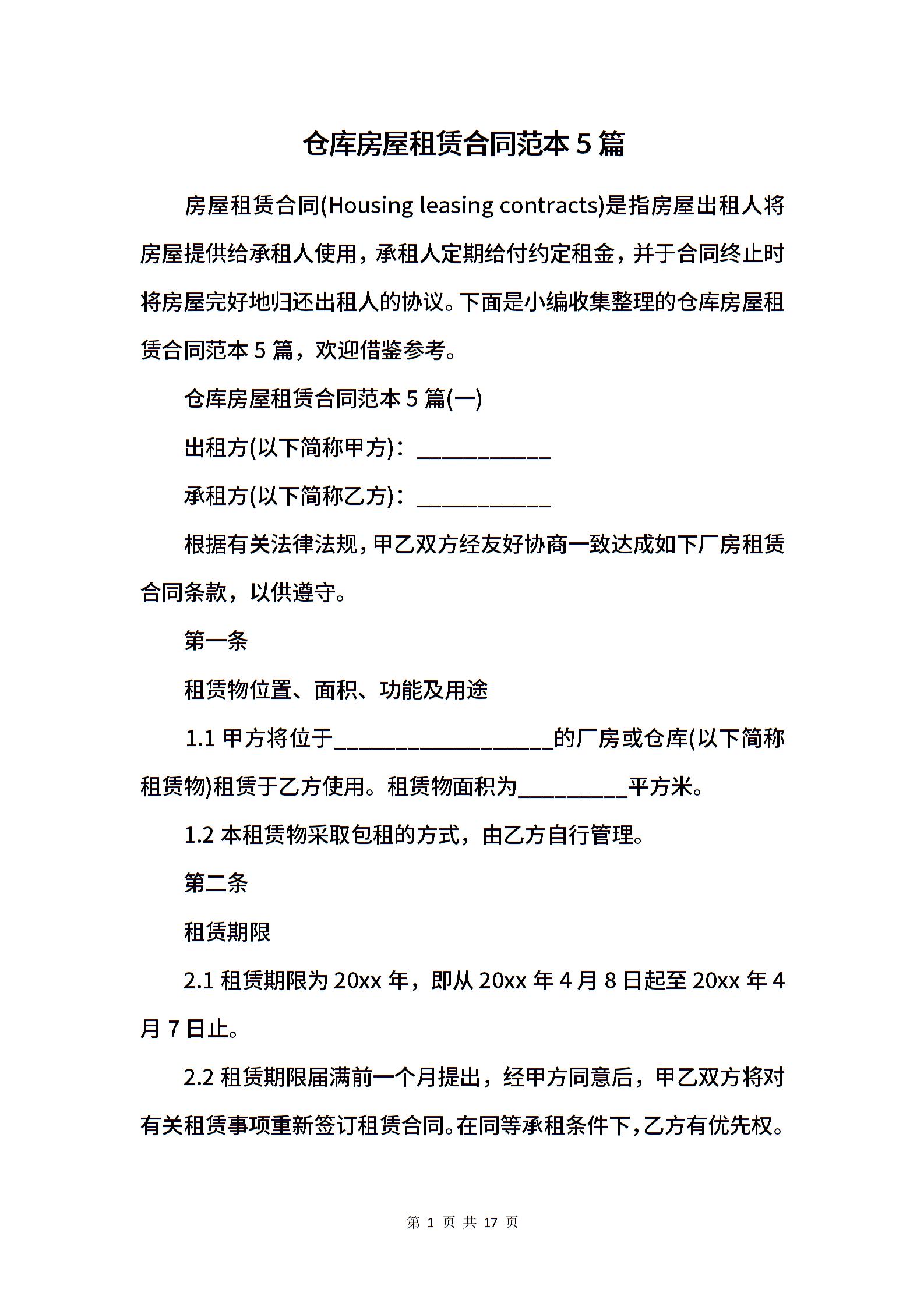 仓库房屋租赁合同范本5篇.docx