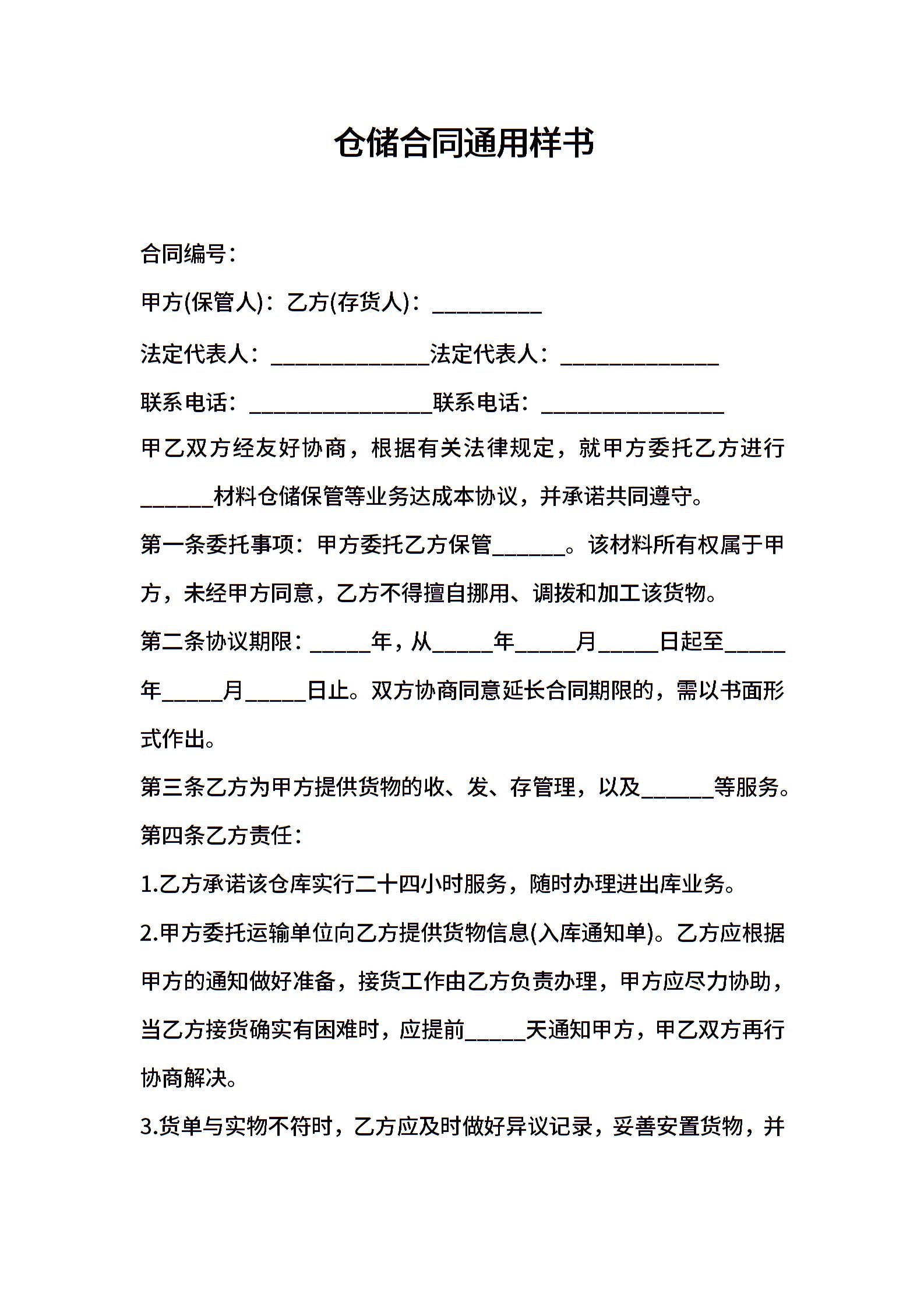 当前位置:量子办公 > 合同模板 > 仓储合同 >