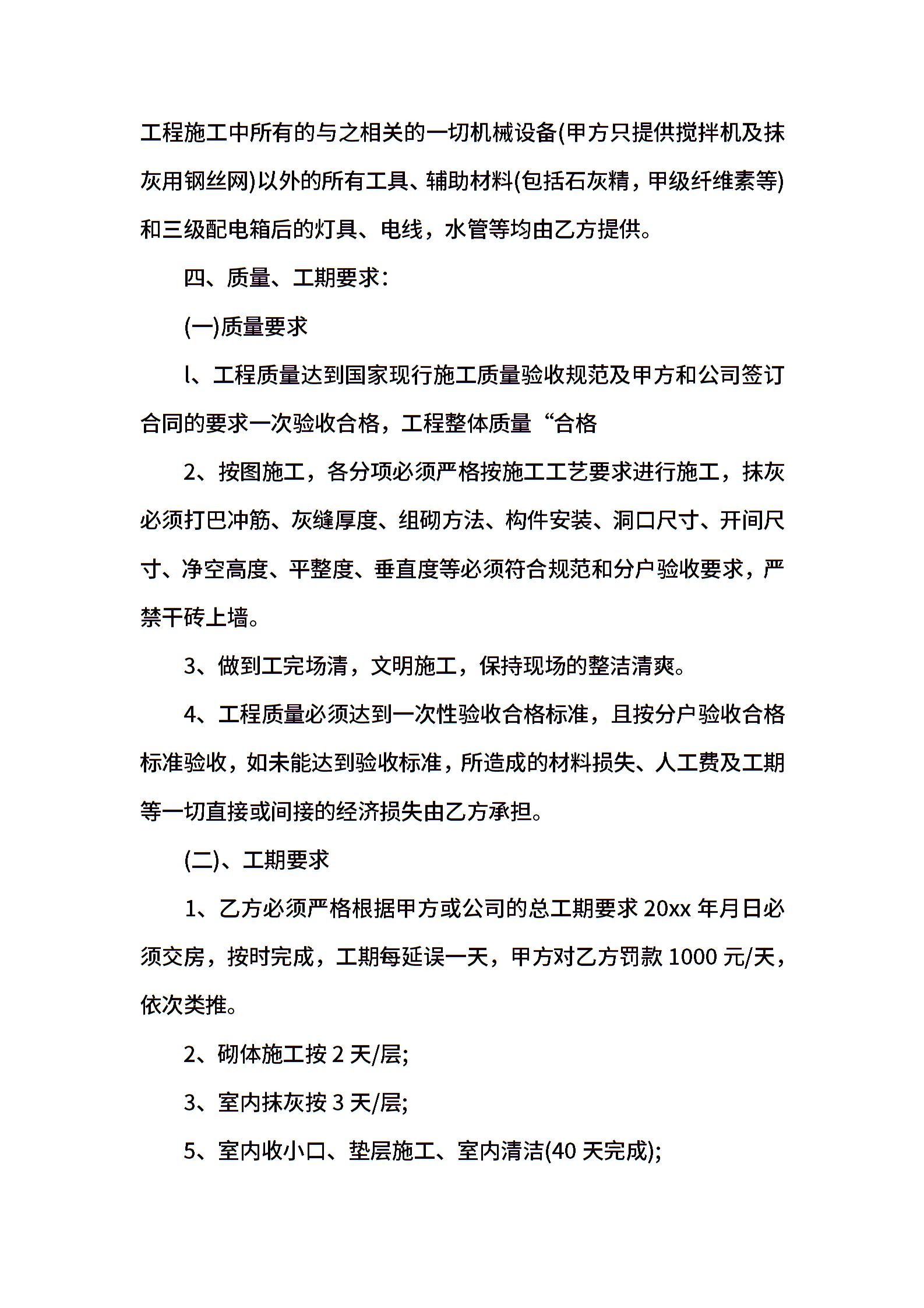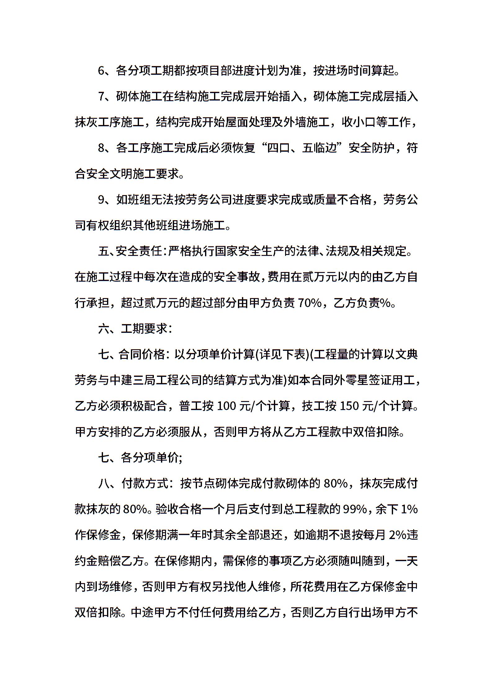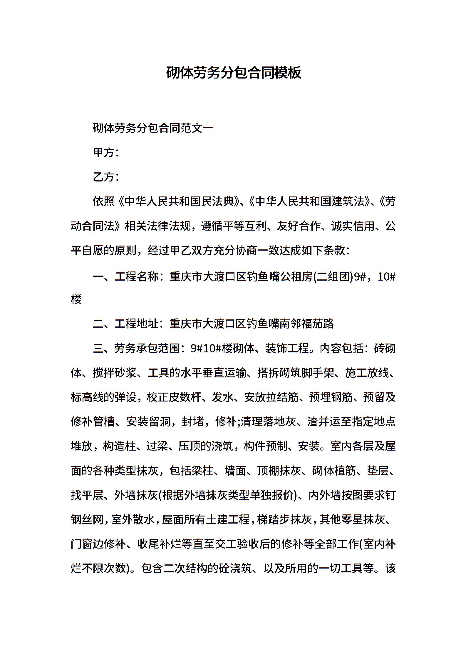 砌体劳务分包合同模板