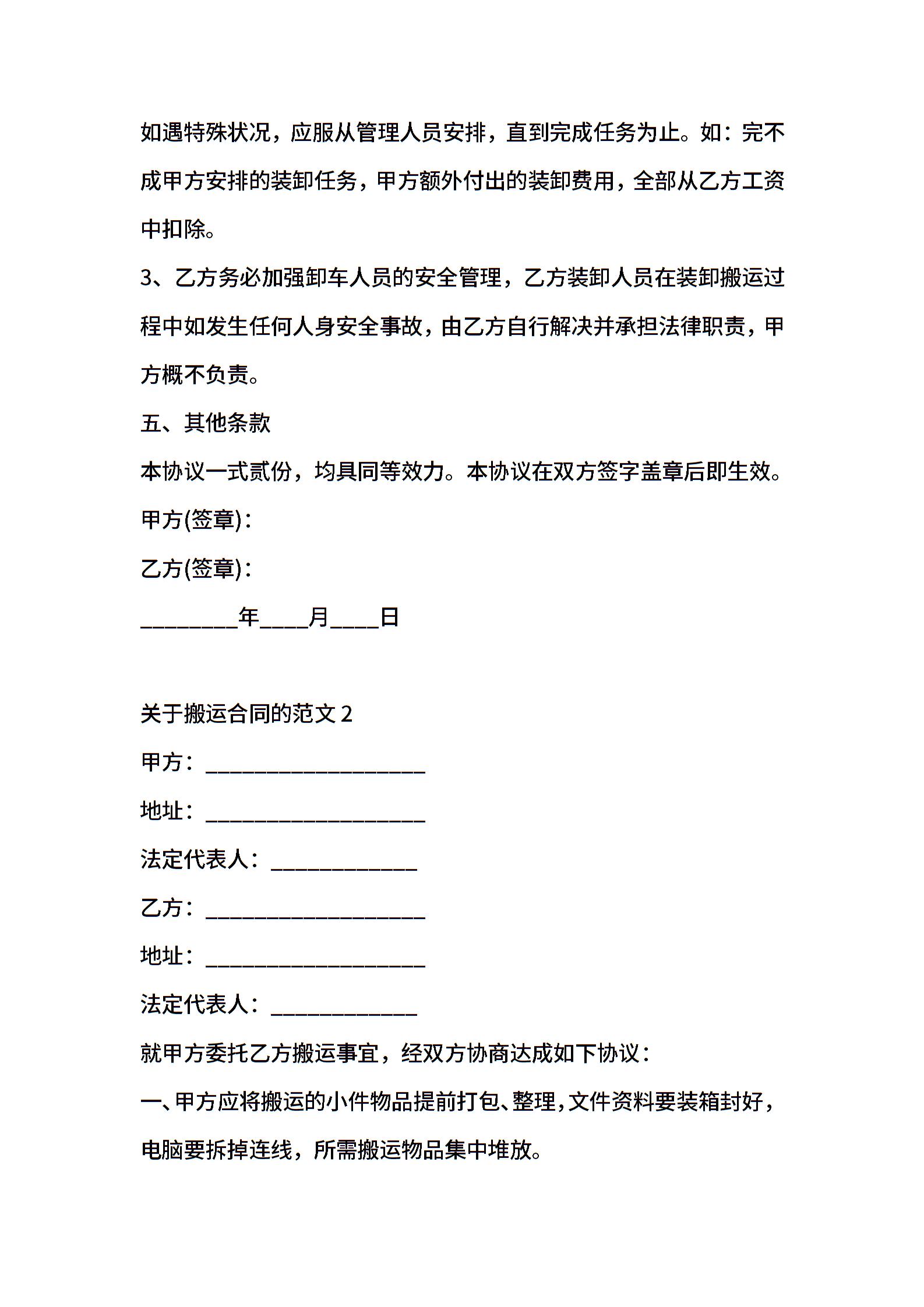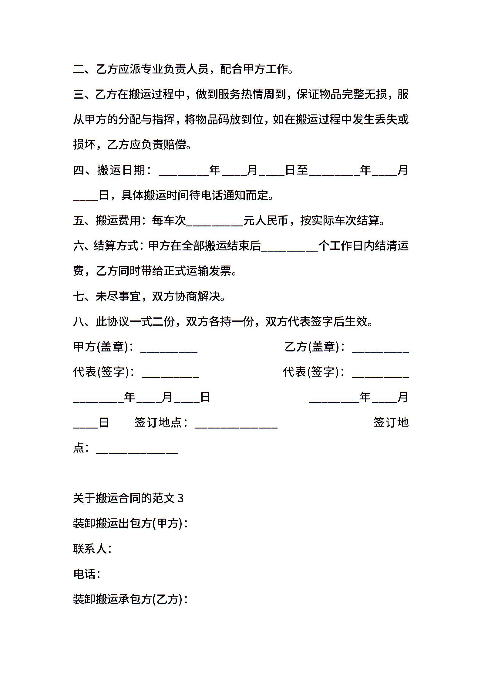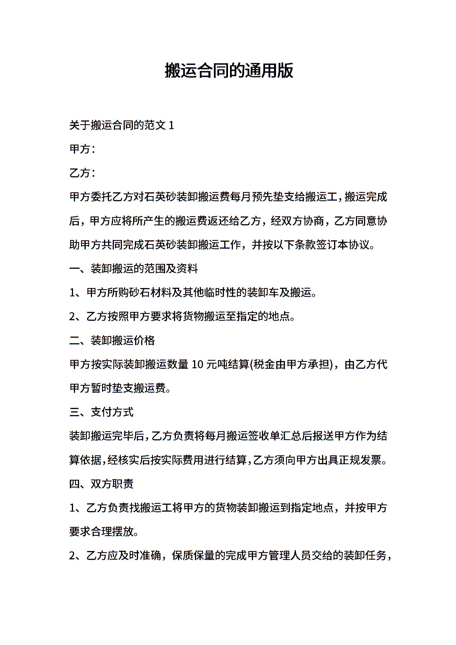 搬运合同的通用版