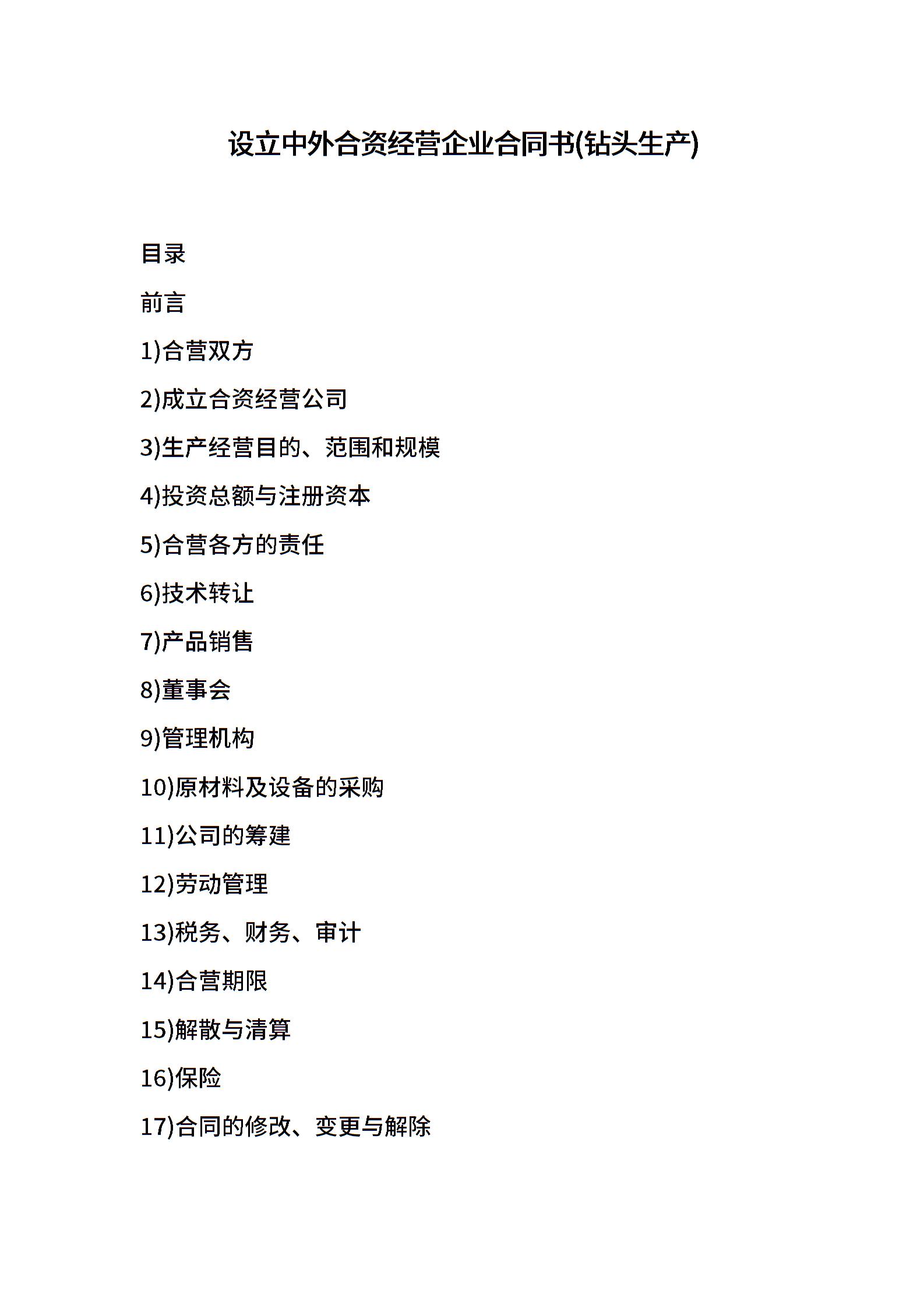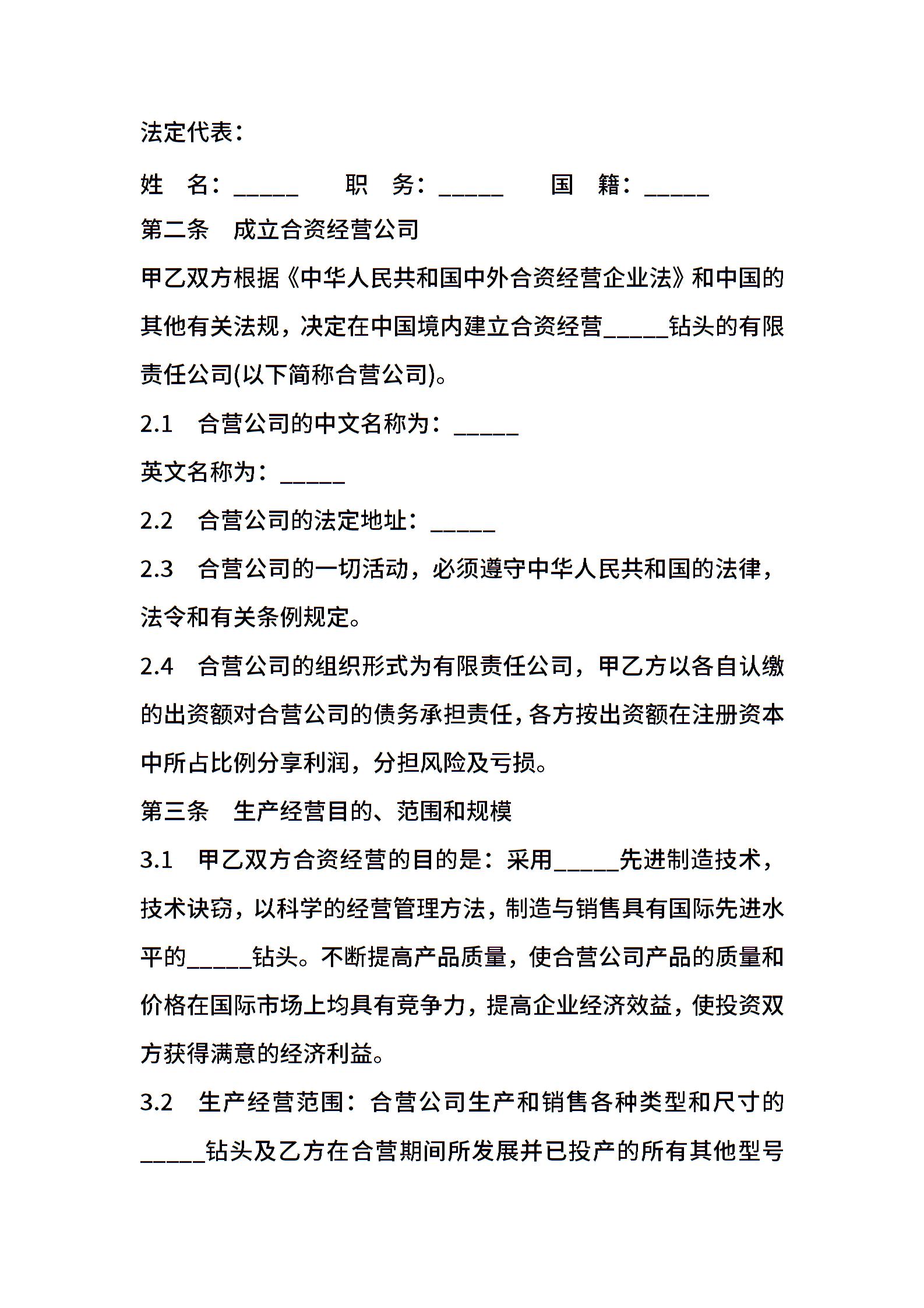 设立中外合资经营企业合同书(钻头生产)