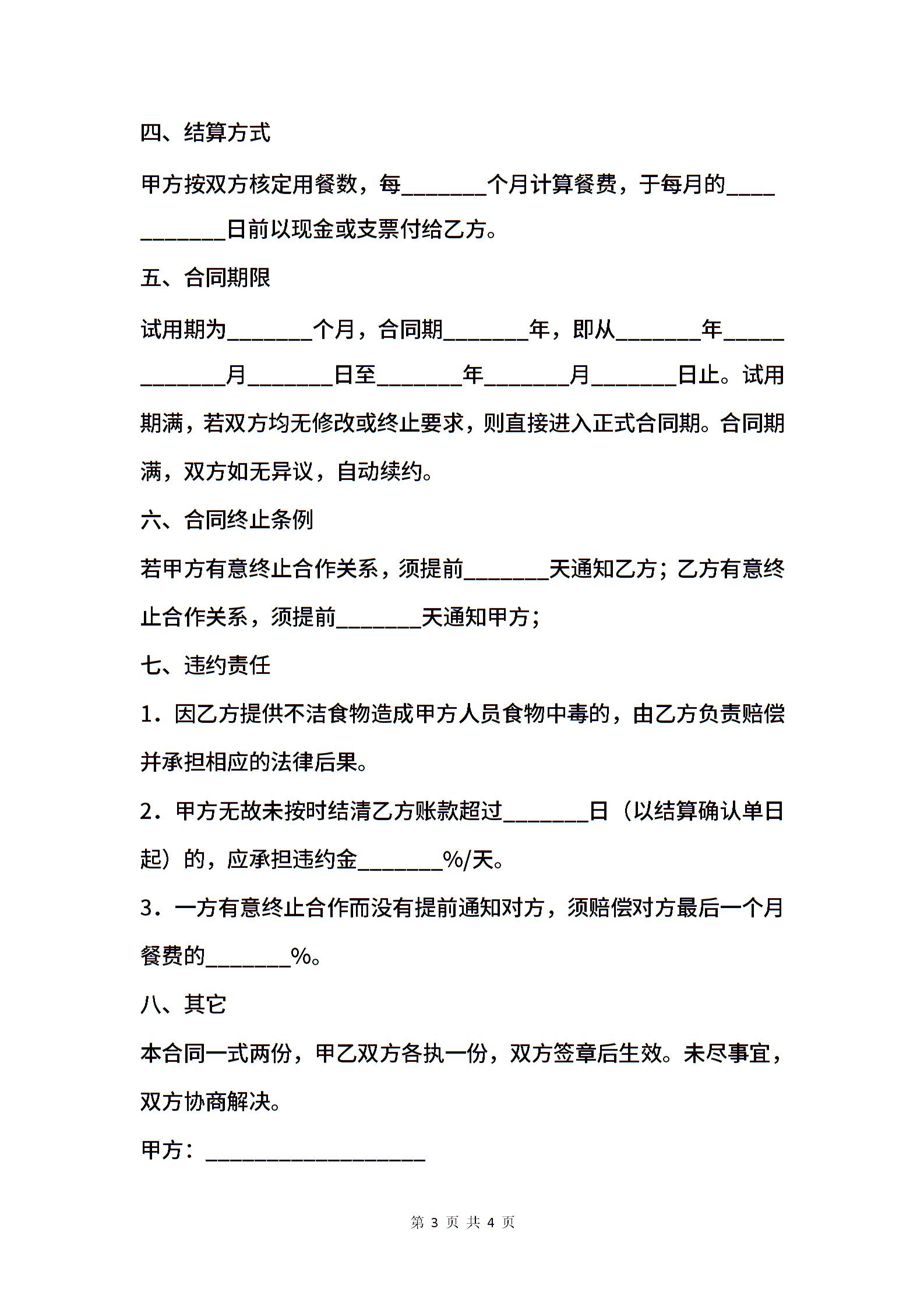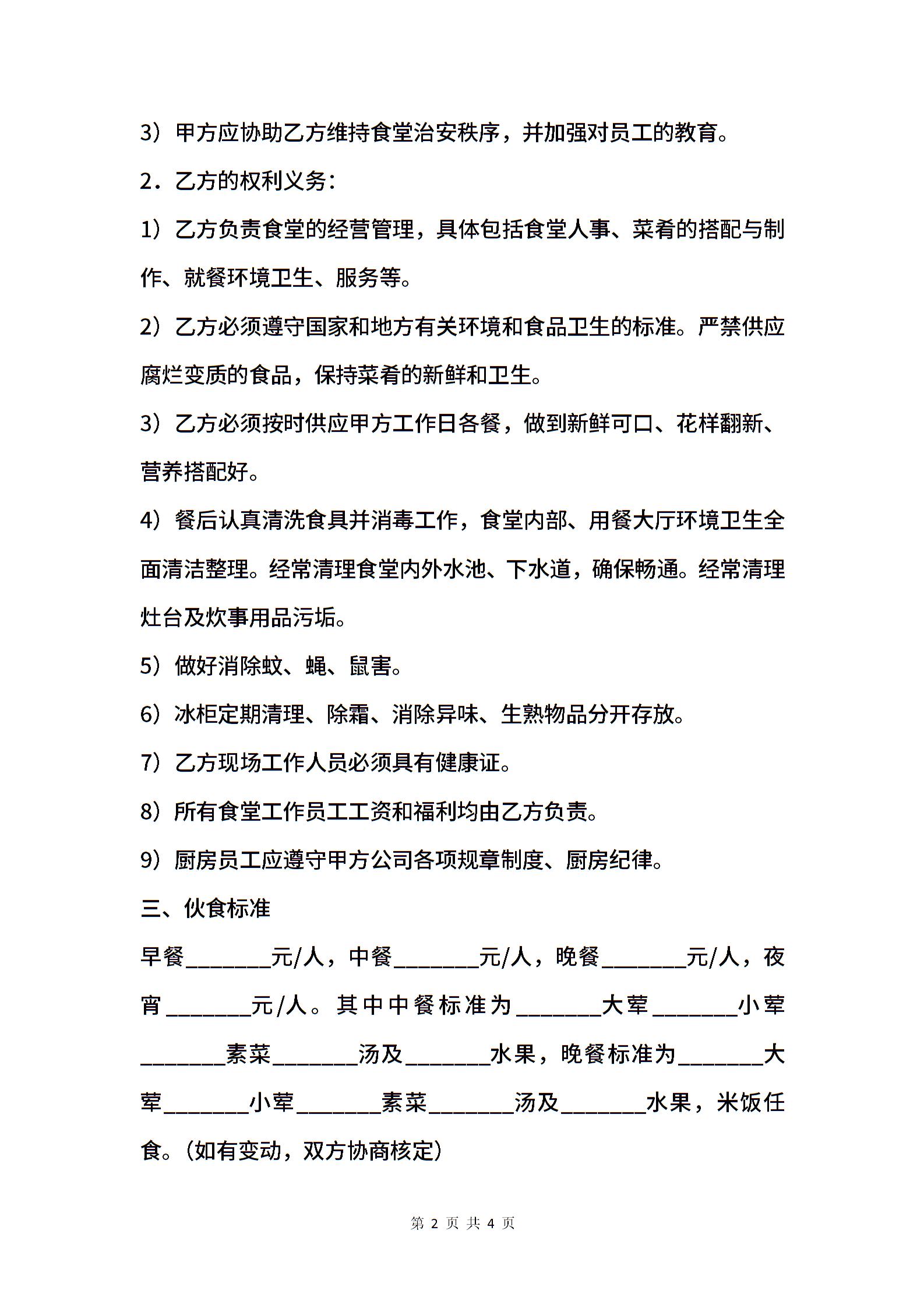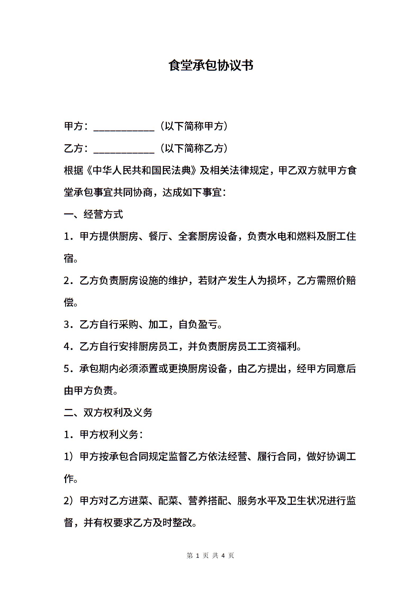 食堂承包协议书