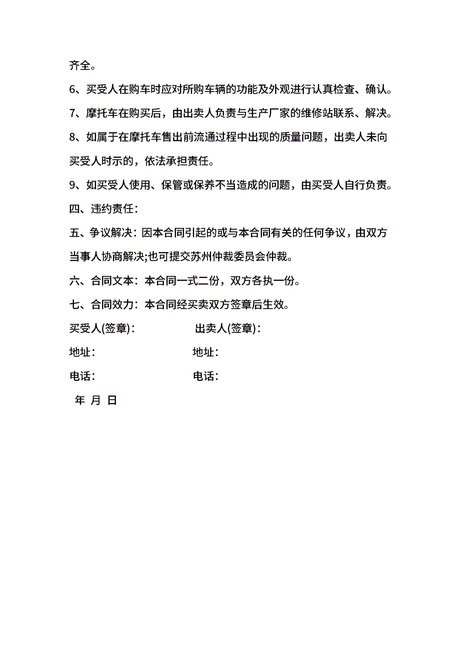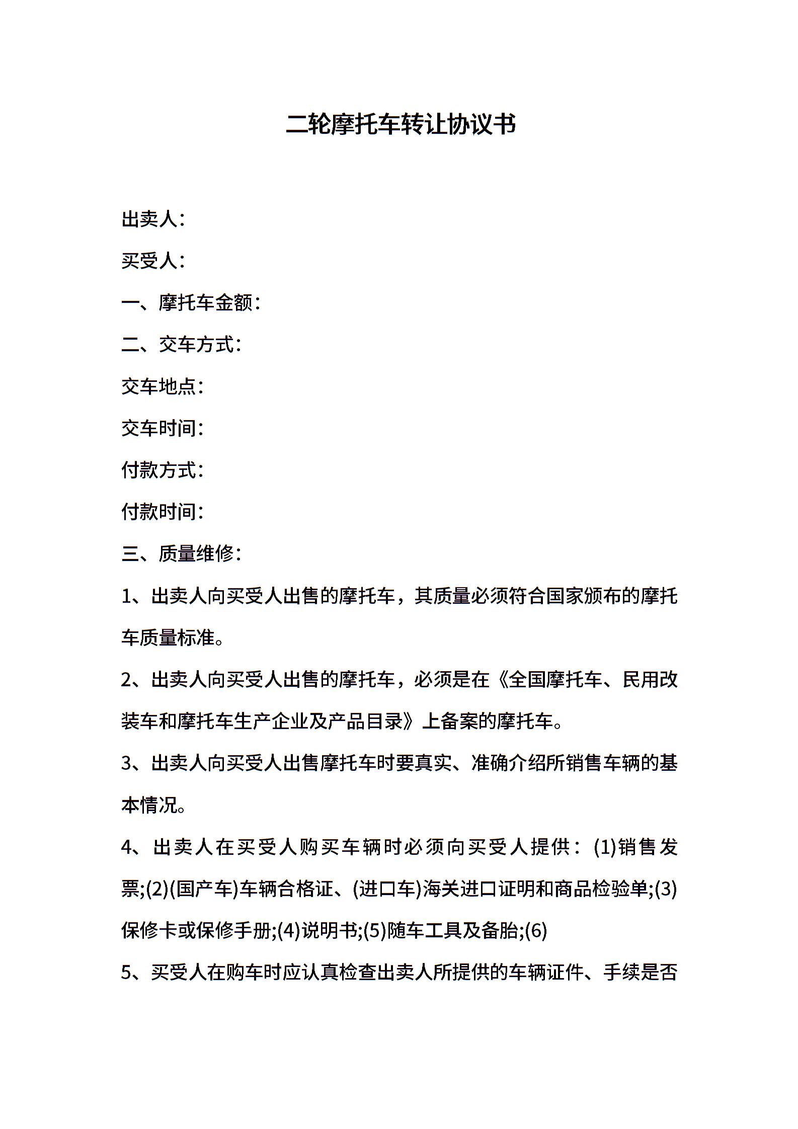 二轮摩托车转让协议书