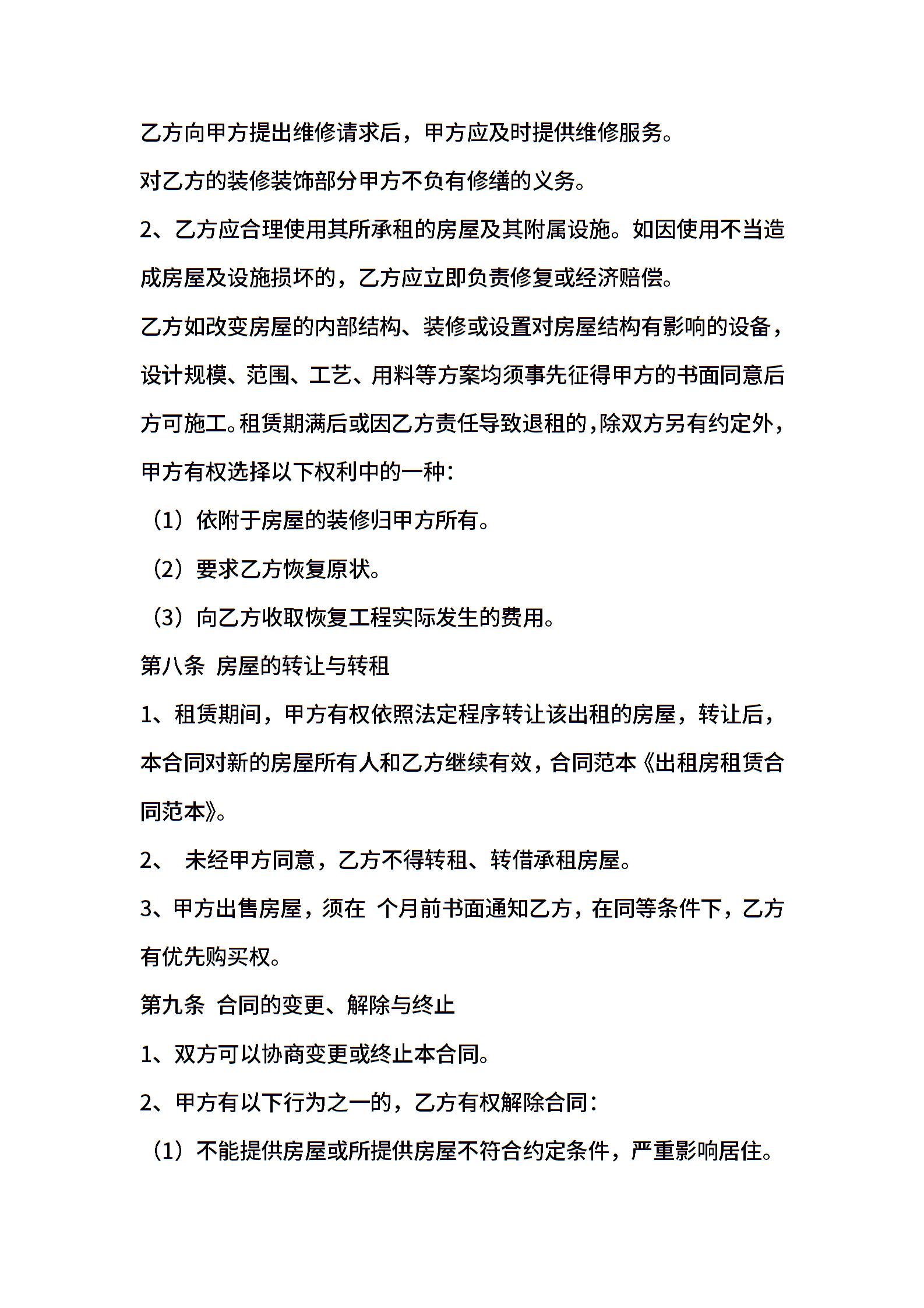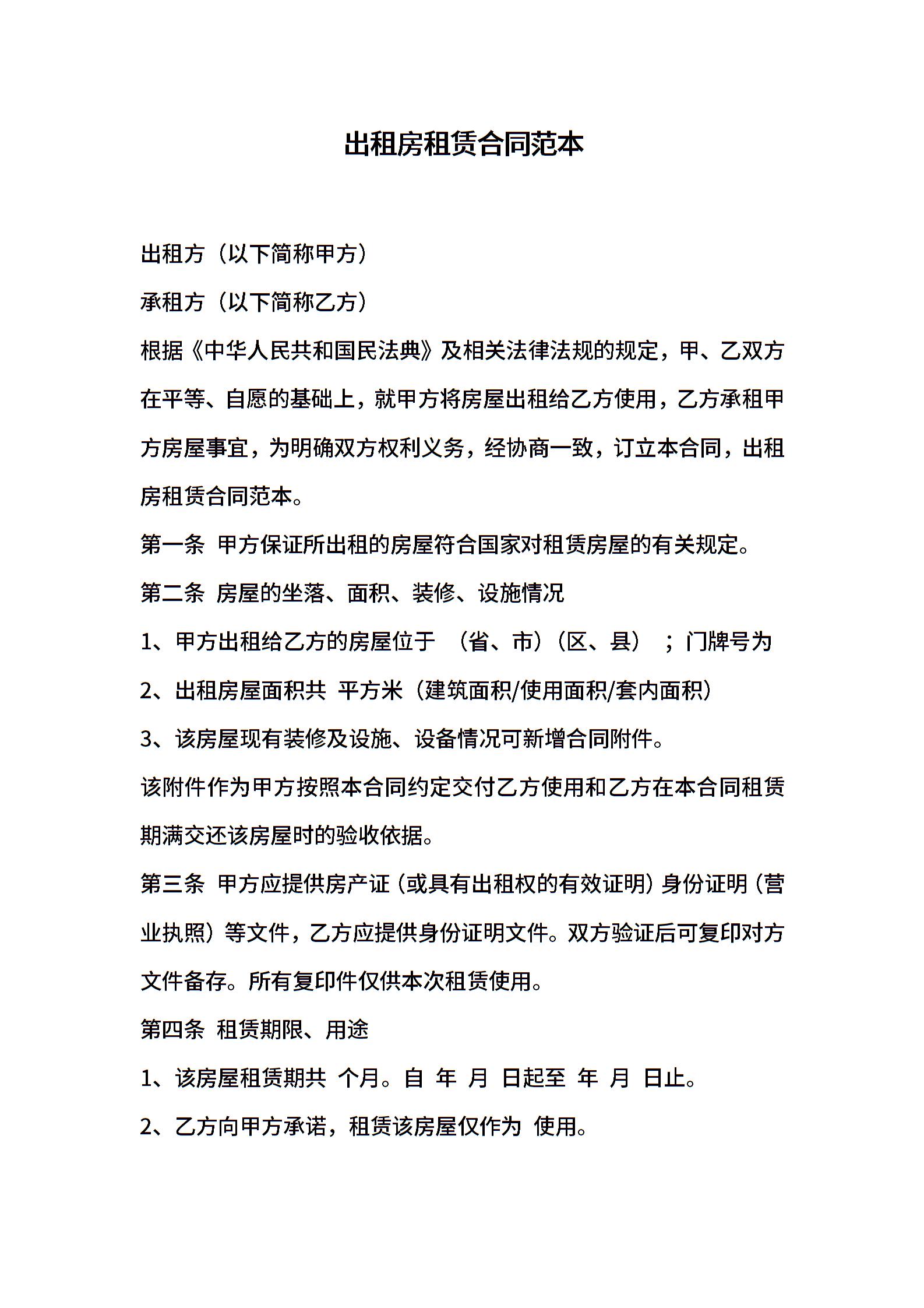 出租房租赁合同范本