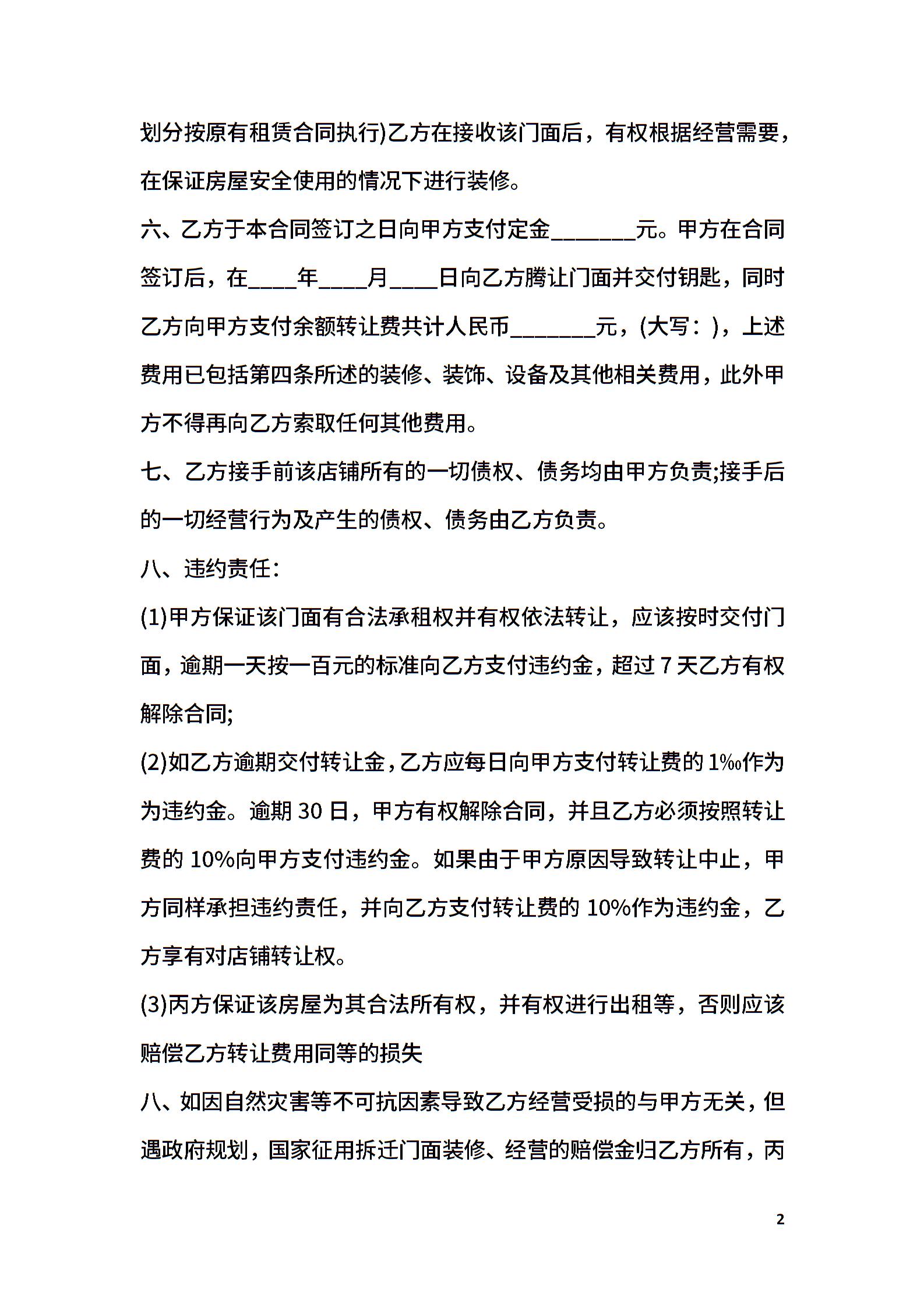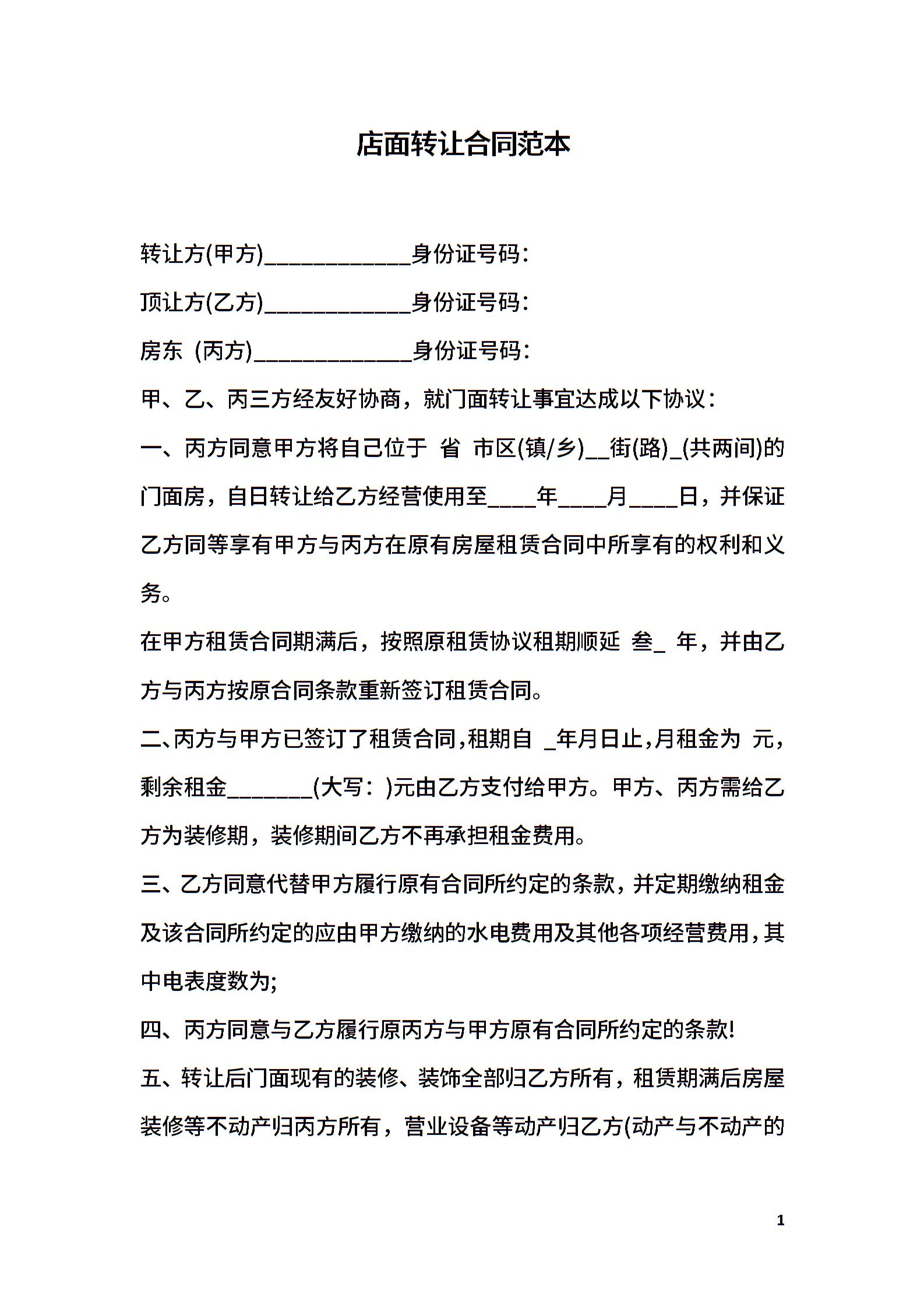 店面转让合同范本