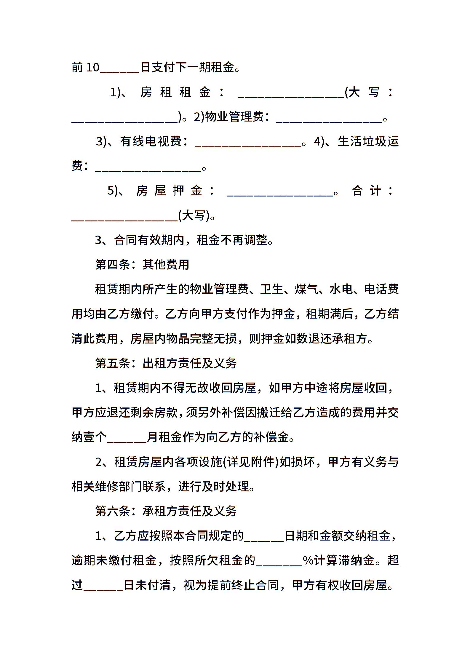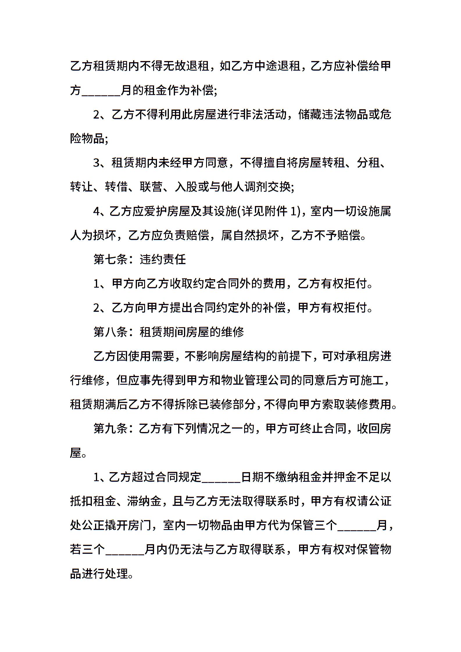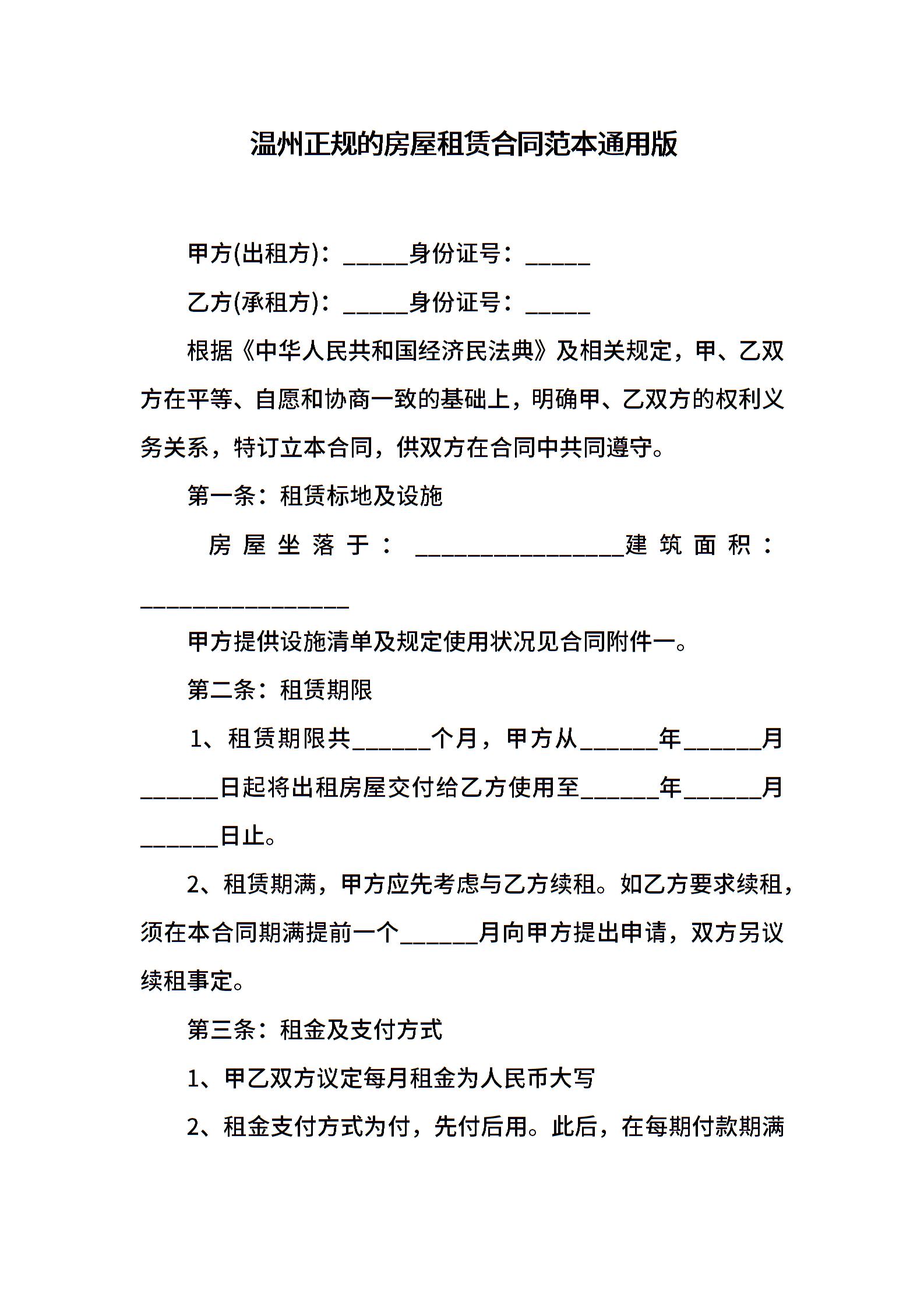 温州正规的房屋租赁合同范本通用版