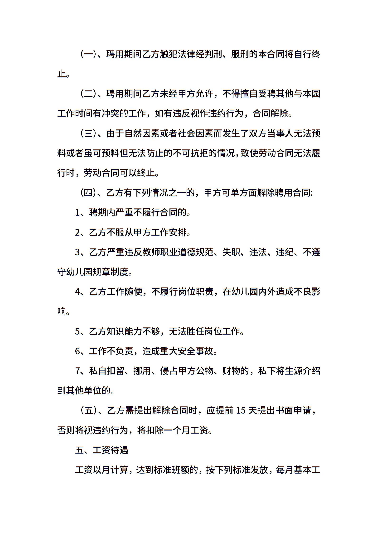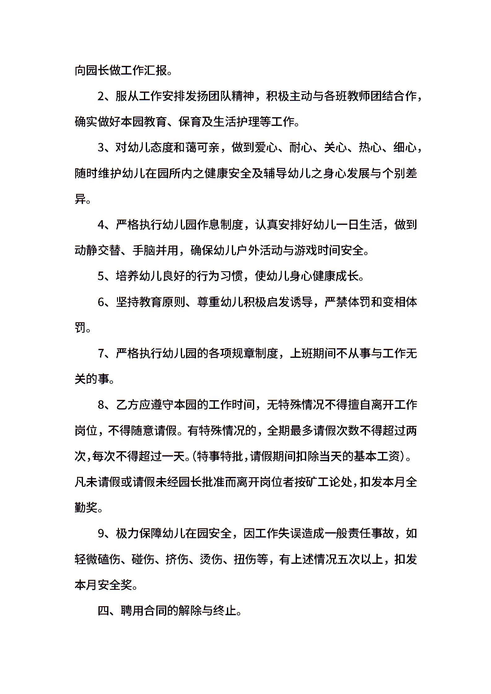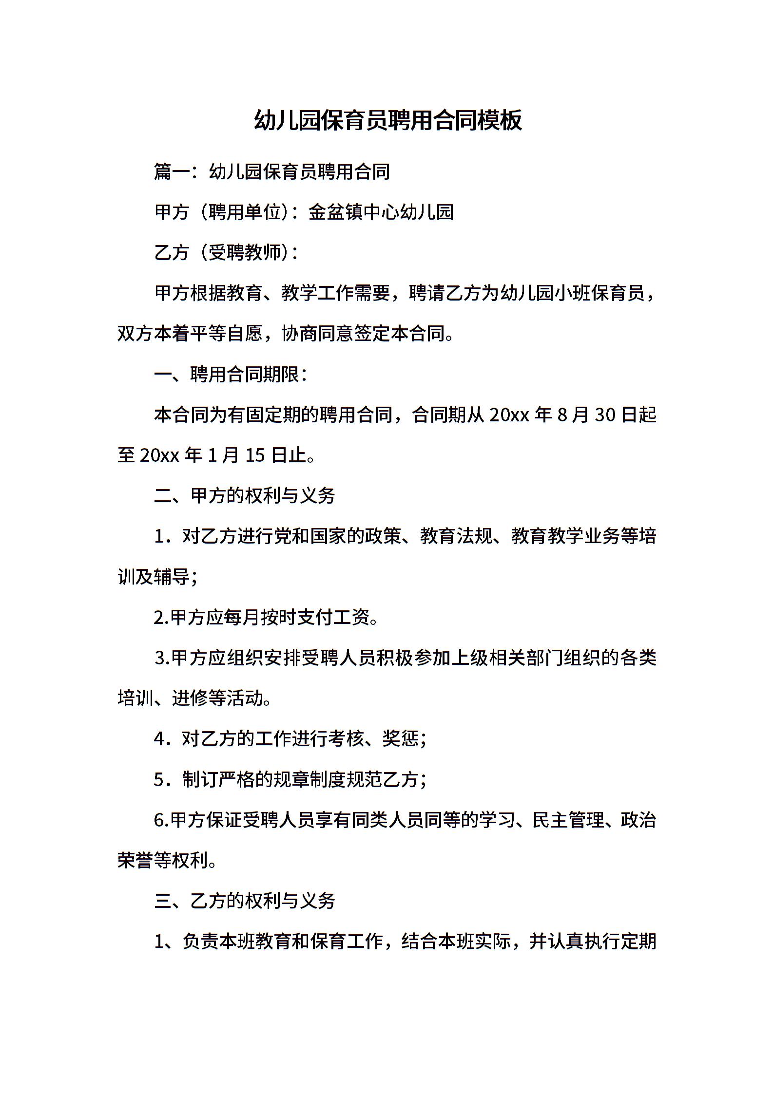 幼儿园保育员聘用合同模板
