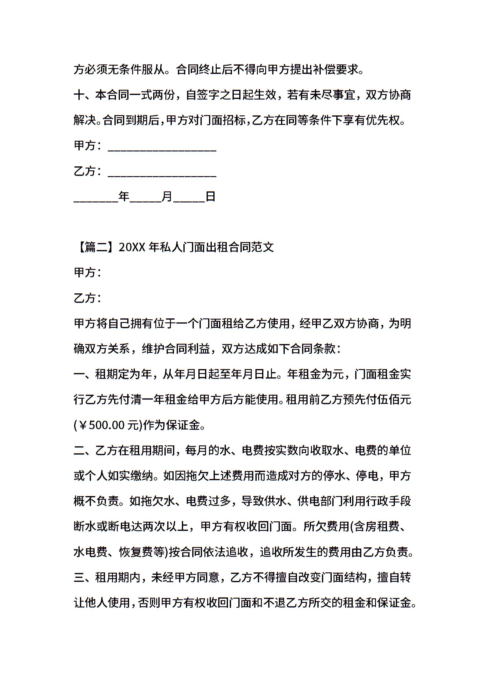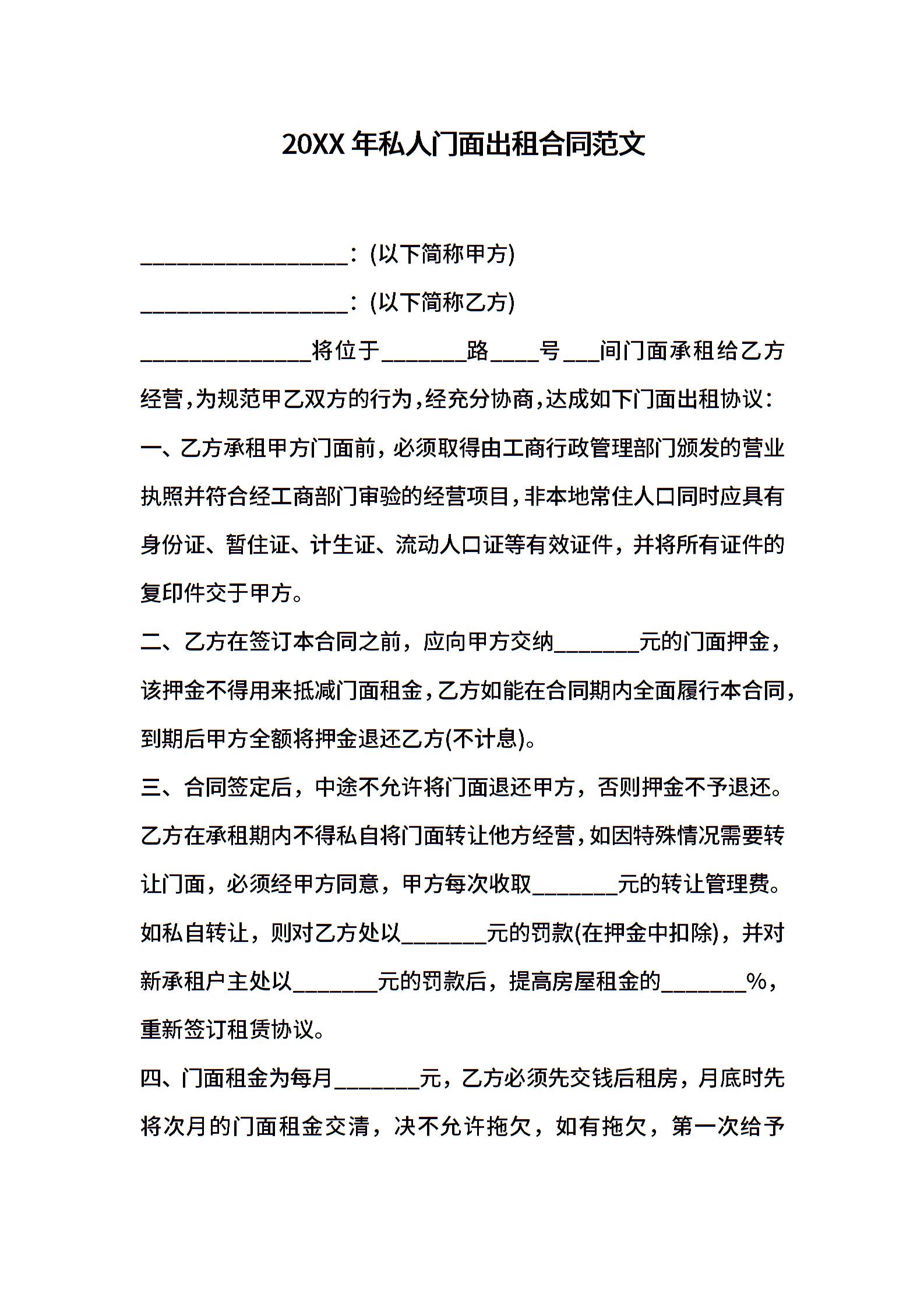 2021年私人门面出租合同范文