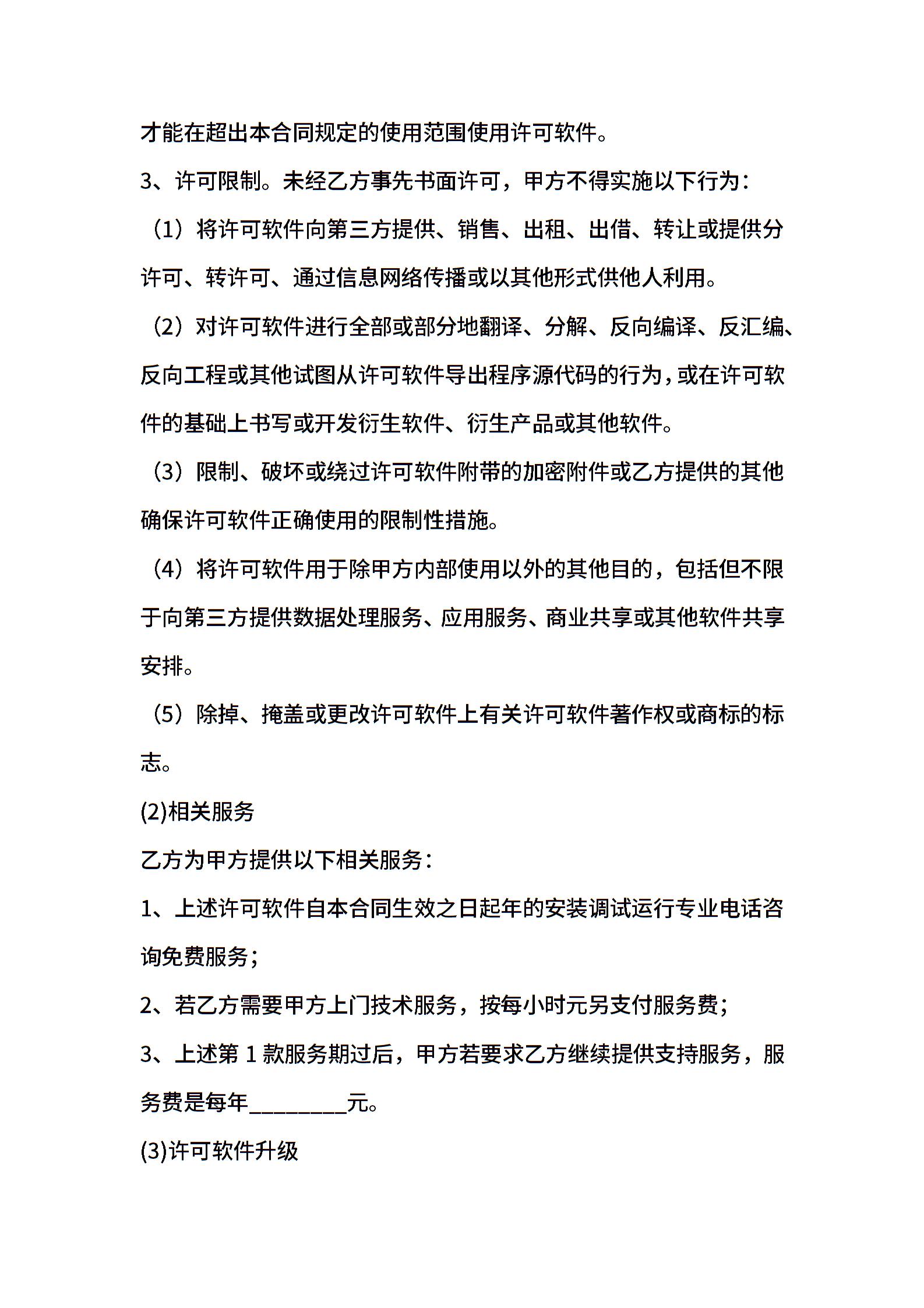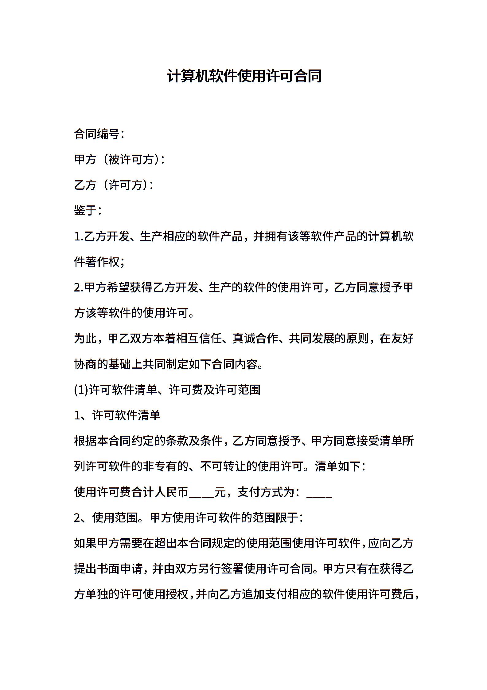 计算机软件使用许可合同