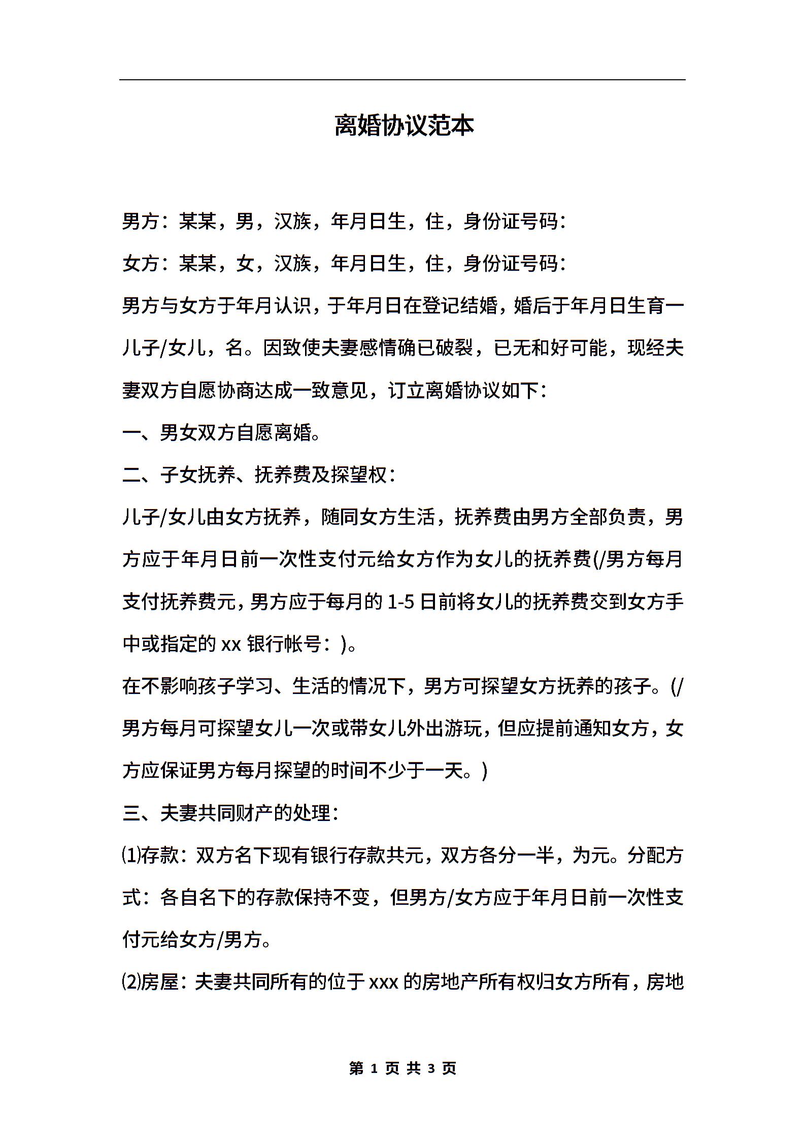 当前位置:量子办公 > 合同模板 > 离婚协议 >