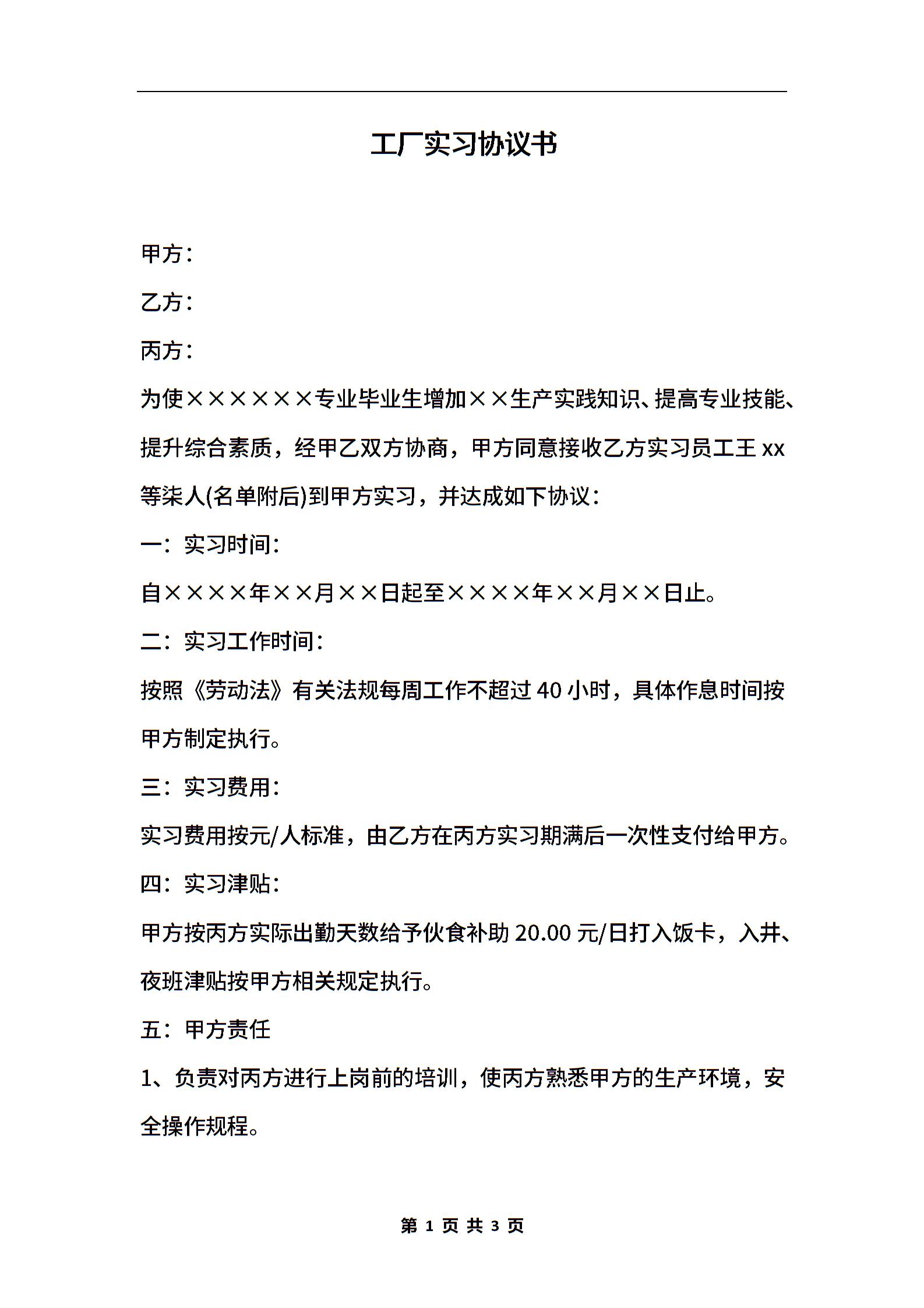 当前位置:量子办公 > 合同模板 > 实习协议 >
