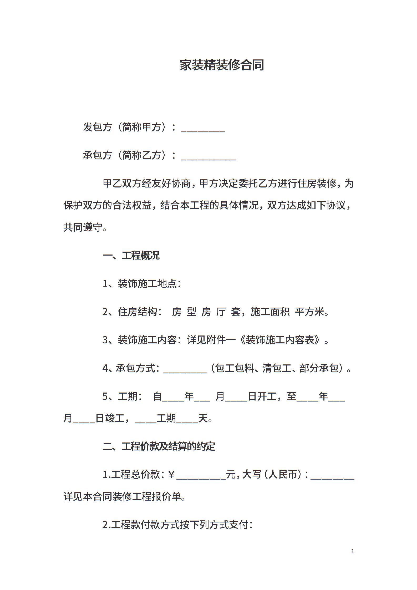 家装精装修合同